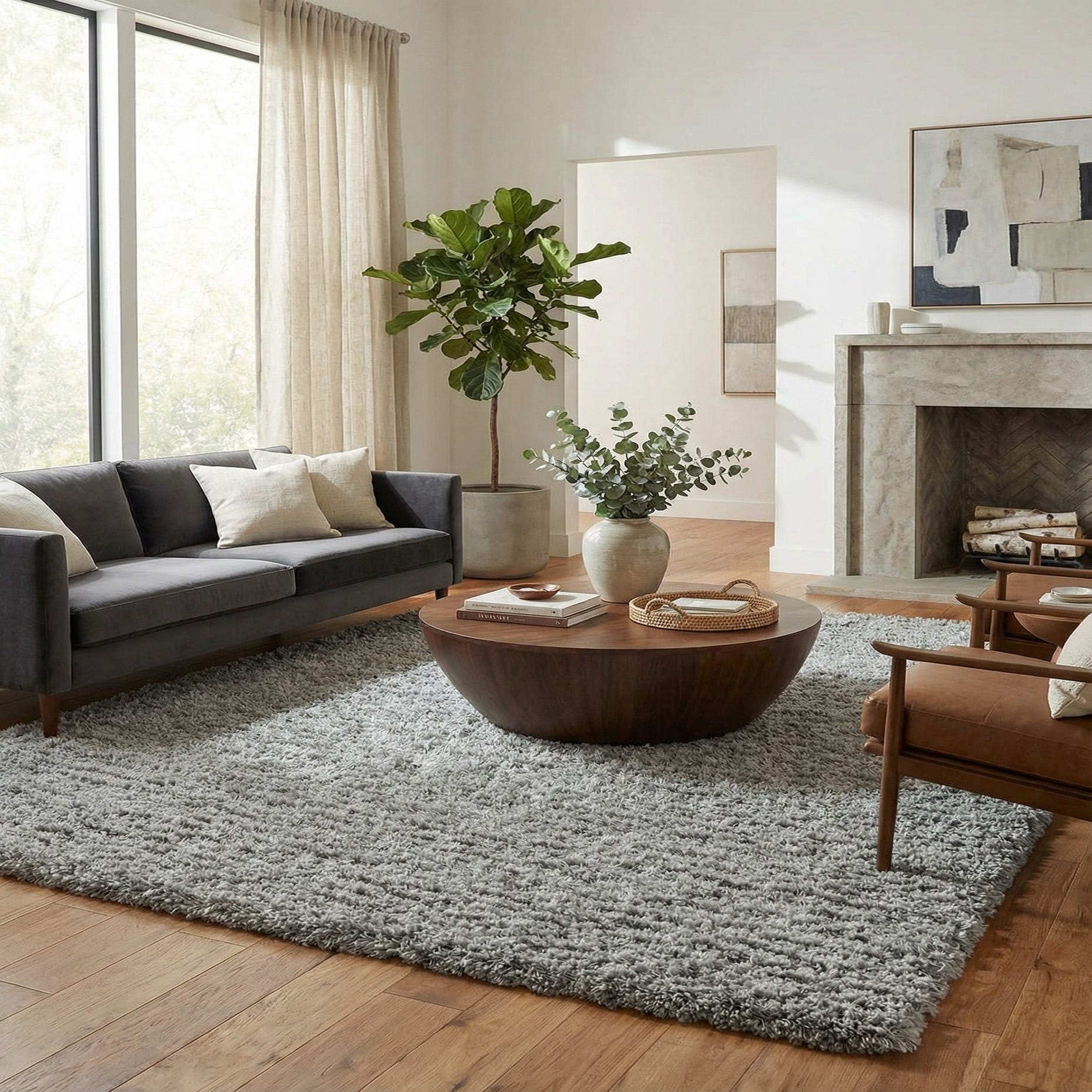 This neutral ash rug works well as an anchor in contemporary and transitional interiors, from a living room beneath a low-profile sectional to a bedroom layered under the foot of the bed to add warmth and comfort. It also pairs neatly with Scandinavian, modern farmhouse, or minimalist schemes where a soft, tonal base is needed; try it under a coffee table to soften hard surfaces or place it in a reading nook to create a cozy, tactile spot.