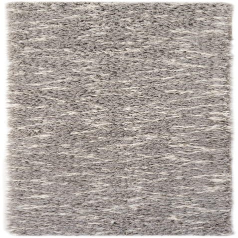 A 12 ft runner rug in shades of gray and silver with a plush shag texture, ideal for a hallway.