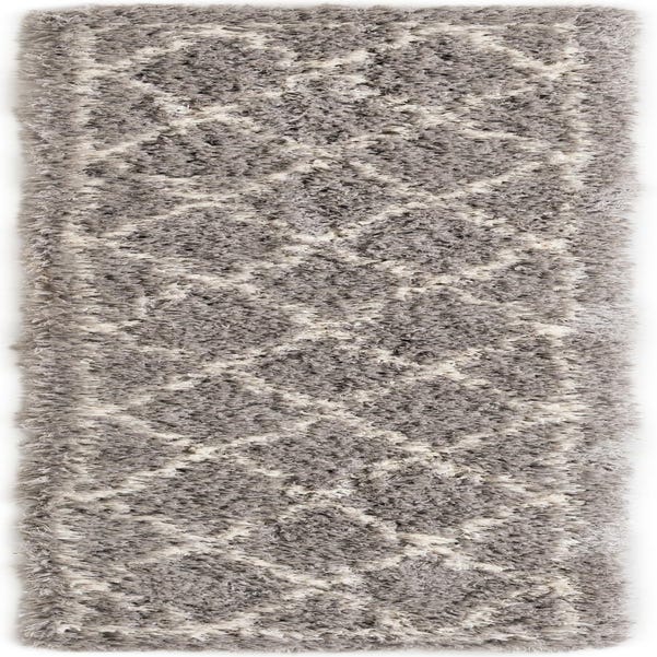 A gray and silver 8 ft runner rug with a modern shag pattern, suitable for a hallway.