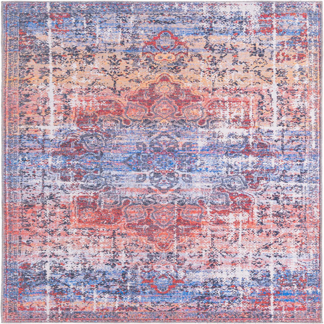 Primary color is Autumn. Colors in this rug include: Autumn, Black, Blue, Red, Orange, Yellow, Gray.