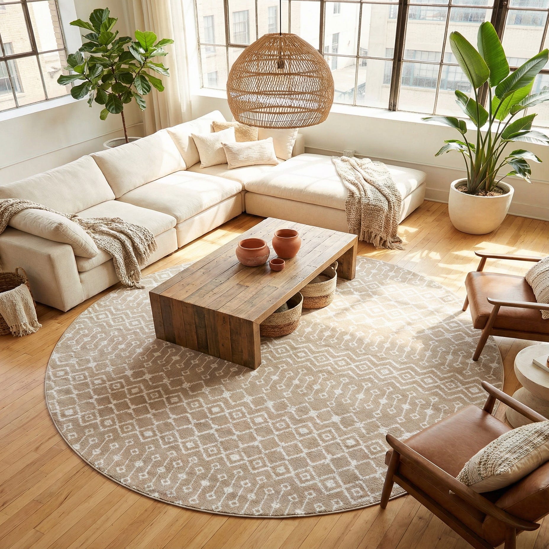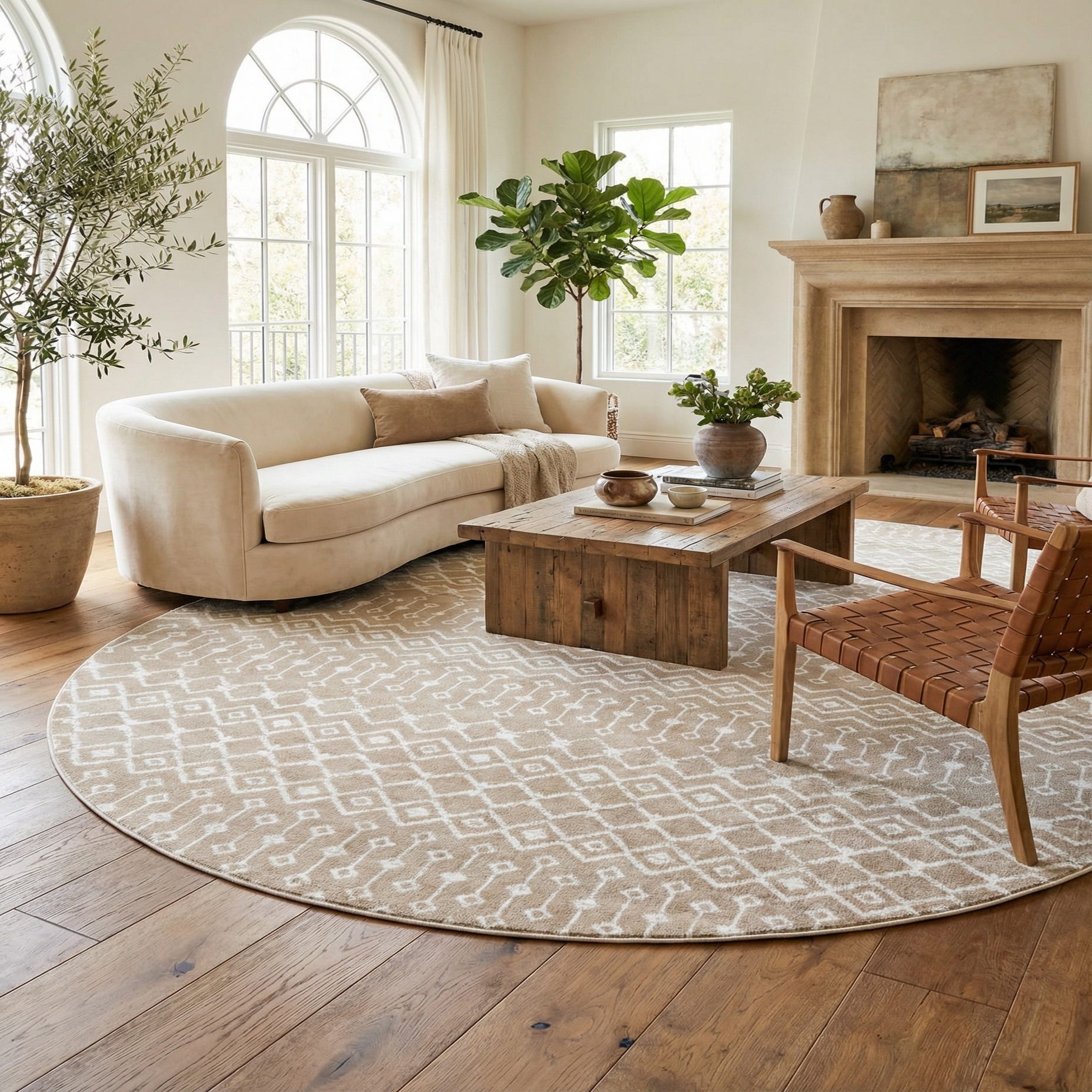 Primary color is Beige. Colors in this rug include: Beige, Ivory.