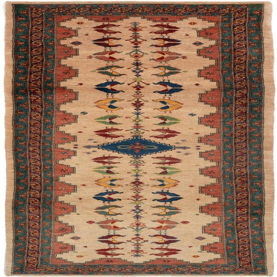 Primary color is Beige. Colors in this rug include: Beige, Language: en