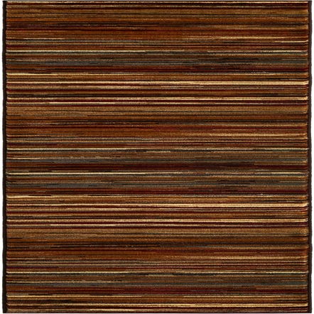 A 10 ft runner rug from the Cafe Collection, featuring a modern stripe pattern in various shades of brown, tan, cream, and subtle hints of grey and burgundy, ideal for a hallway.