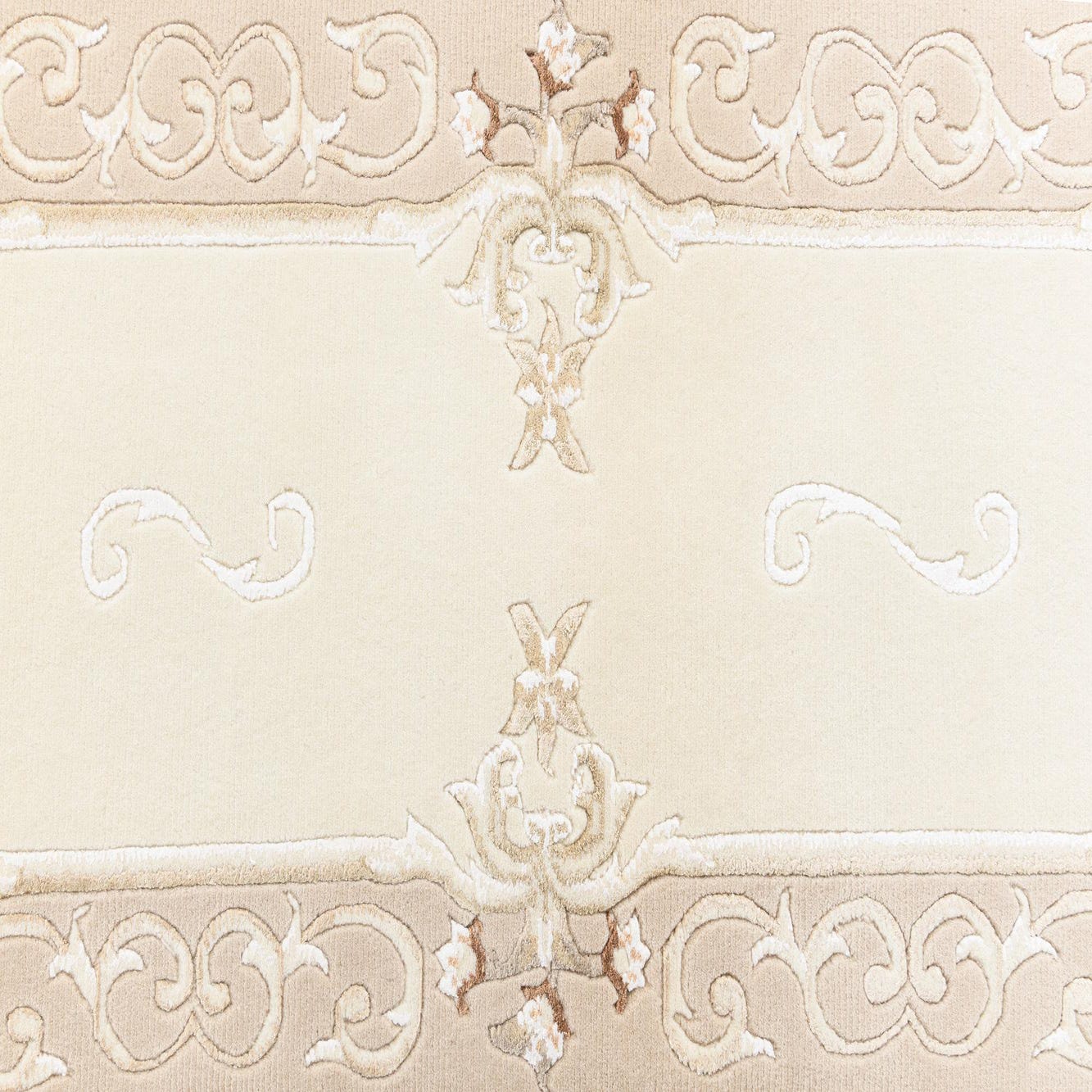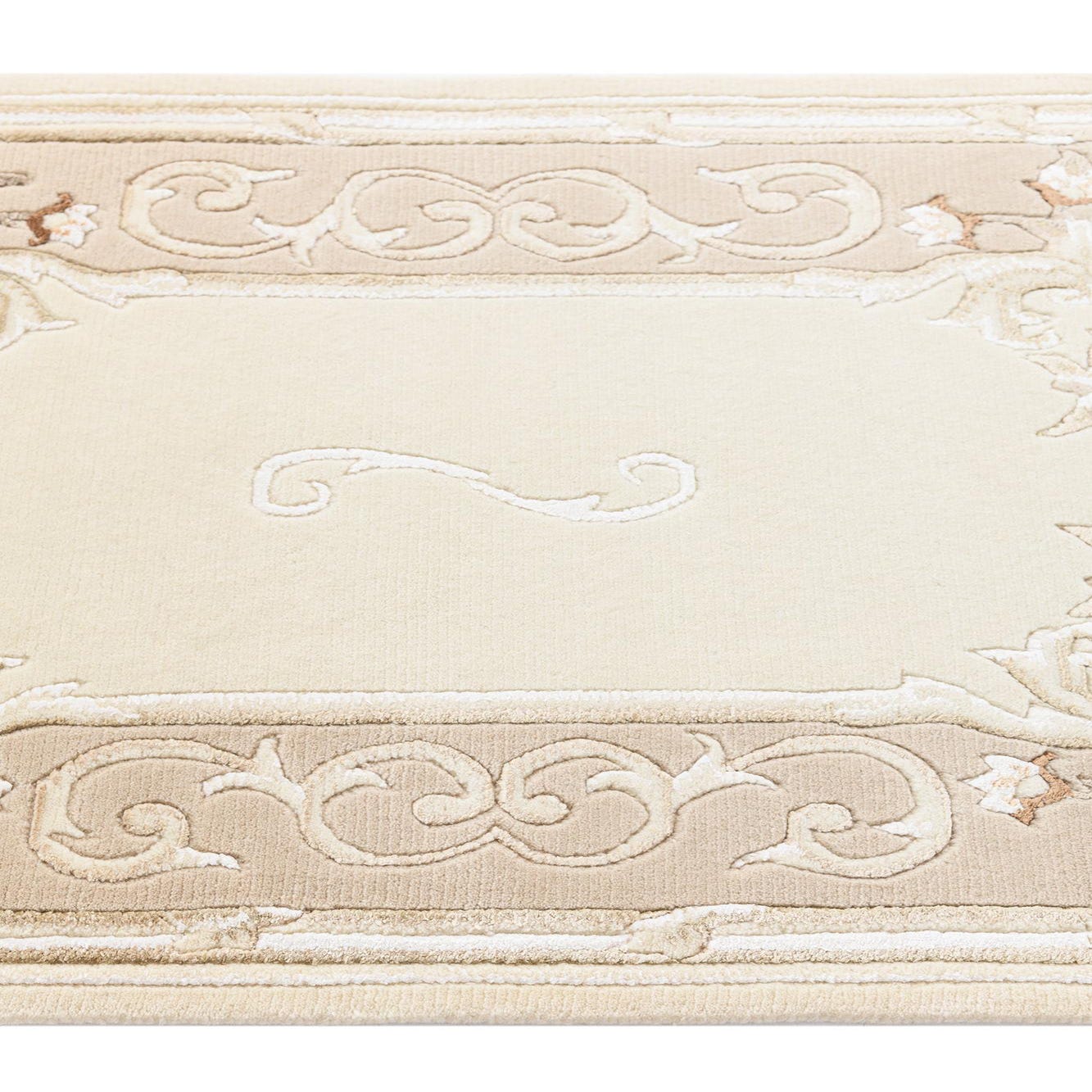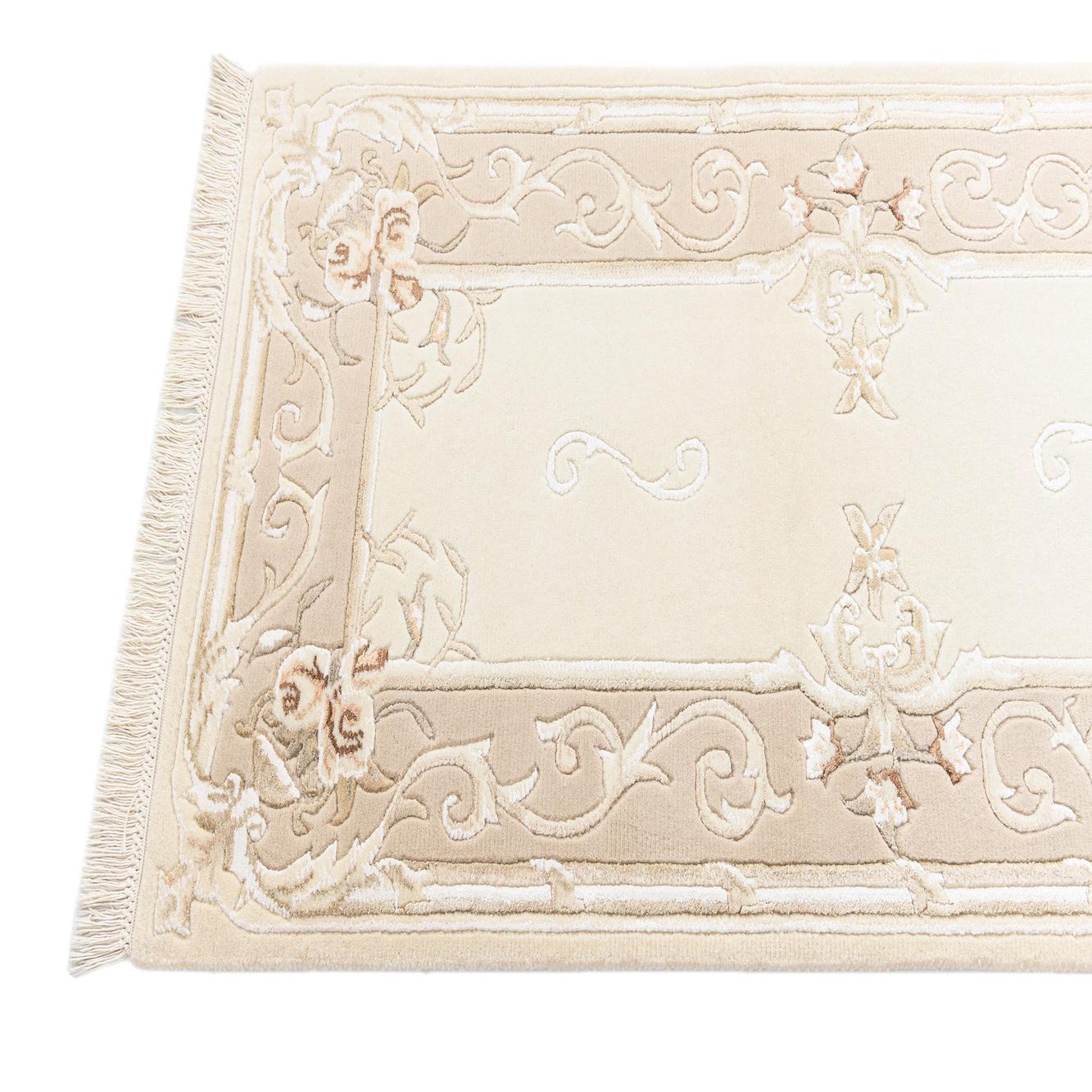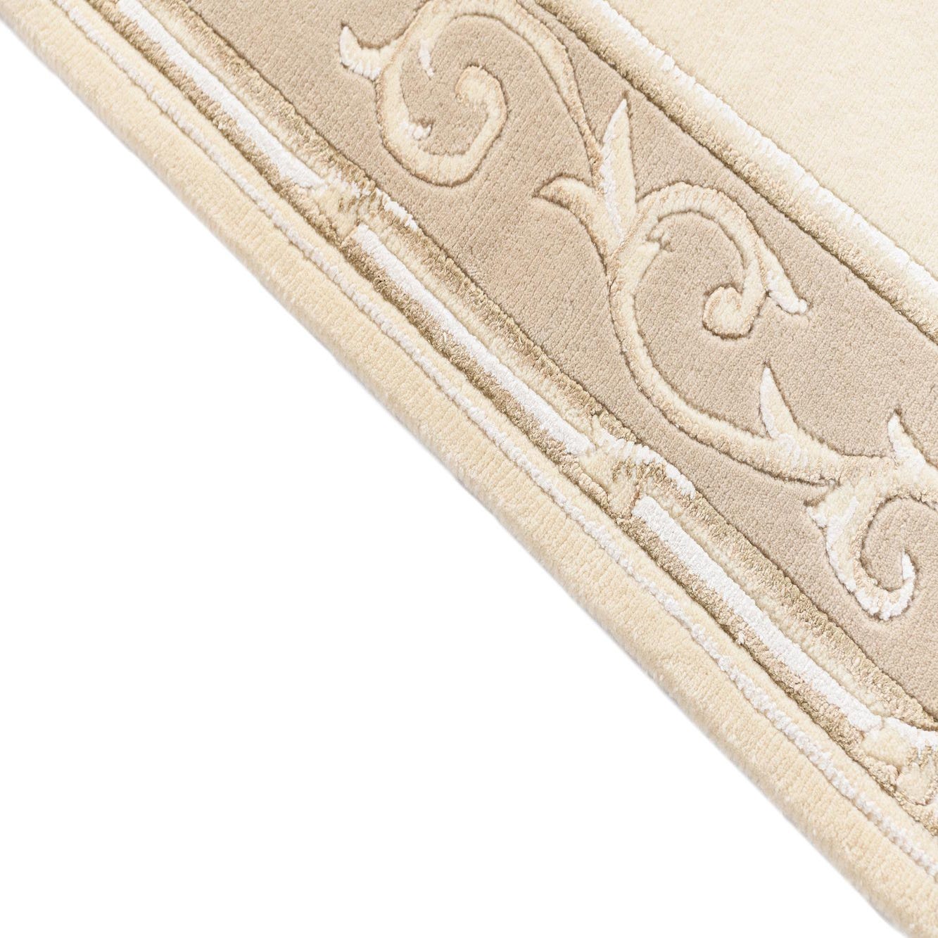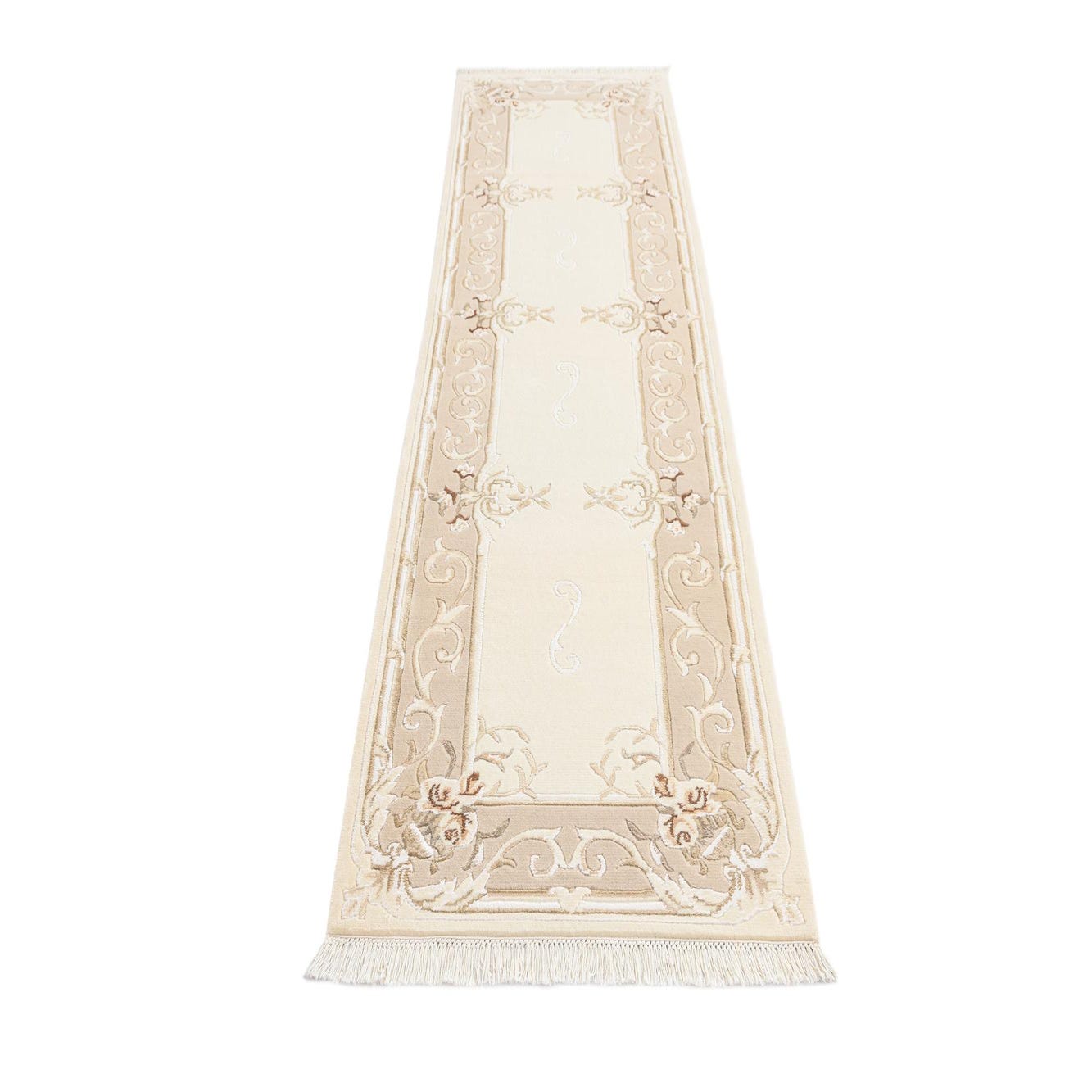 Ideal for a variety of interior design scenarios, this runner would complement spaces that embrace traditional or transitional decor. It would be particularly well-suited for hallways, entryways, or long, narrow spaces where the elegance of the design can be fully appreciated. The neutral color scheme allows it to integrate smoothly with a wide range of color palettes, making it a versatile addition to any sophisticated home decor.