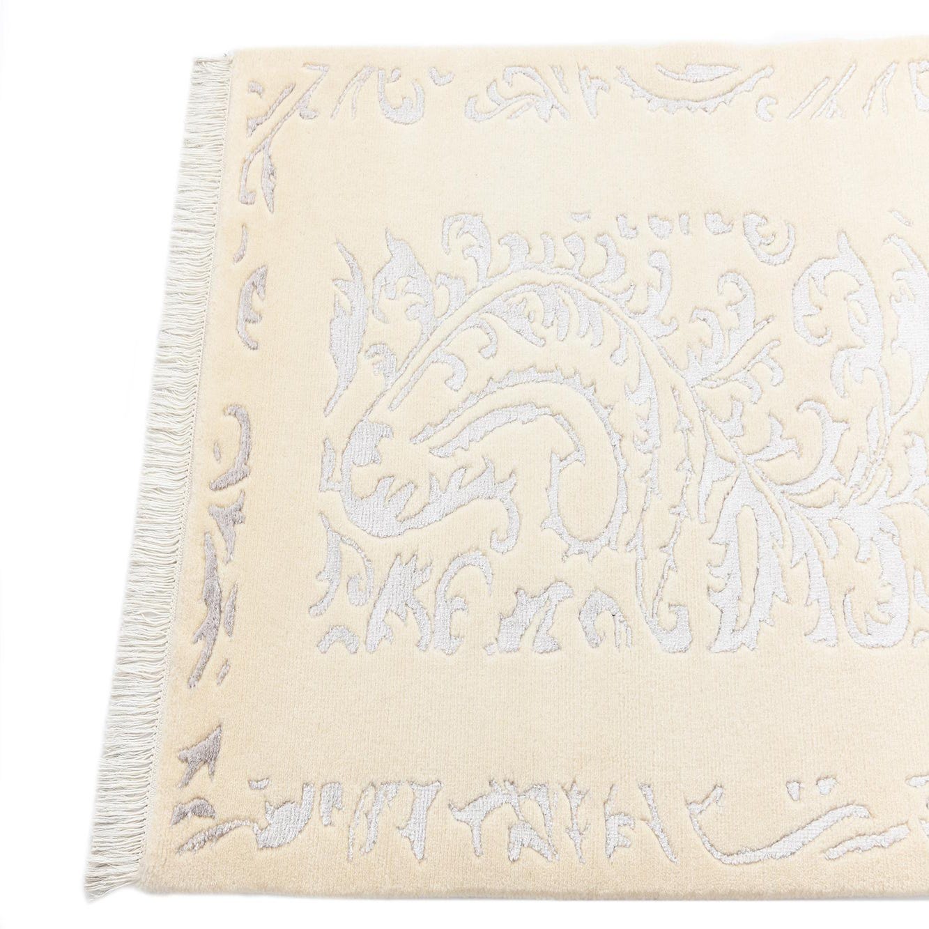 Primary color is Beige. Colors in this rug include: Beige, Silver.