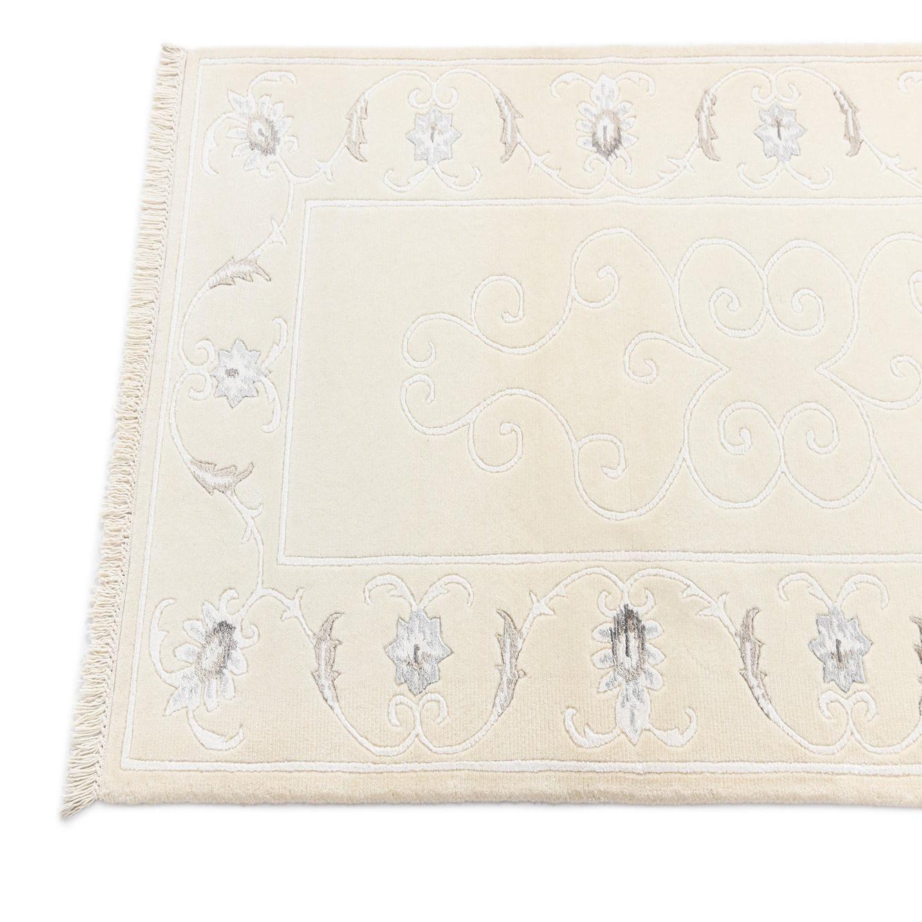 Primary color is Beige. Colors in this rug include: Beige, Brown, Ivory, Light Brown, Silver.