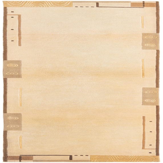 Primary color is Beige. Colors in this rug include: Beige, Brown, Gold, Light Brown, Tan.