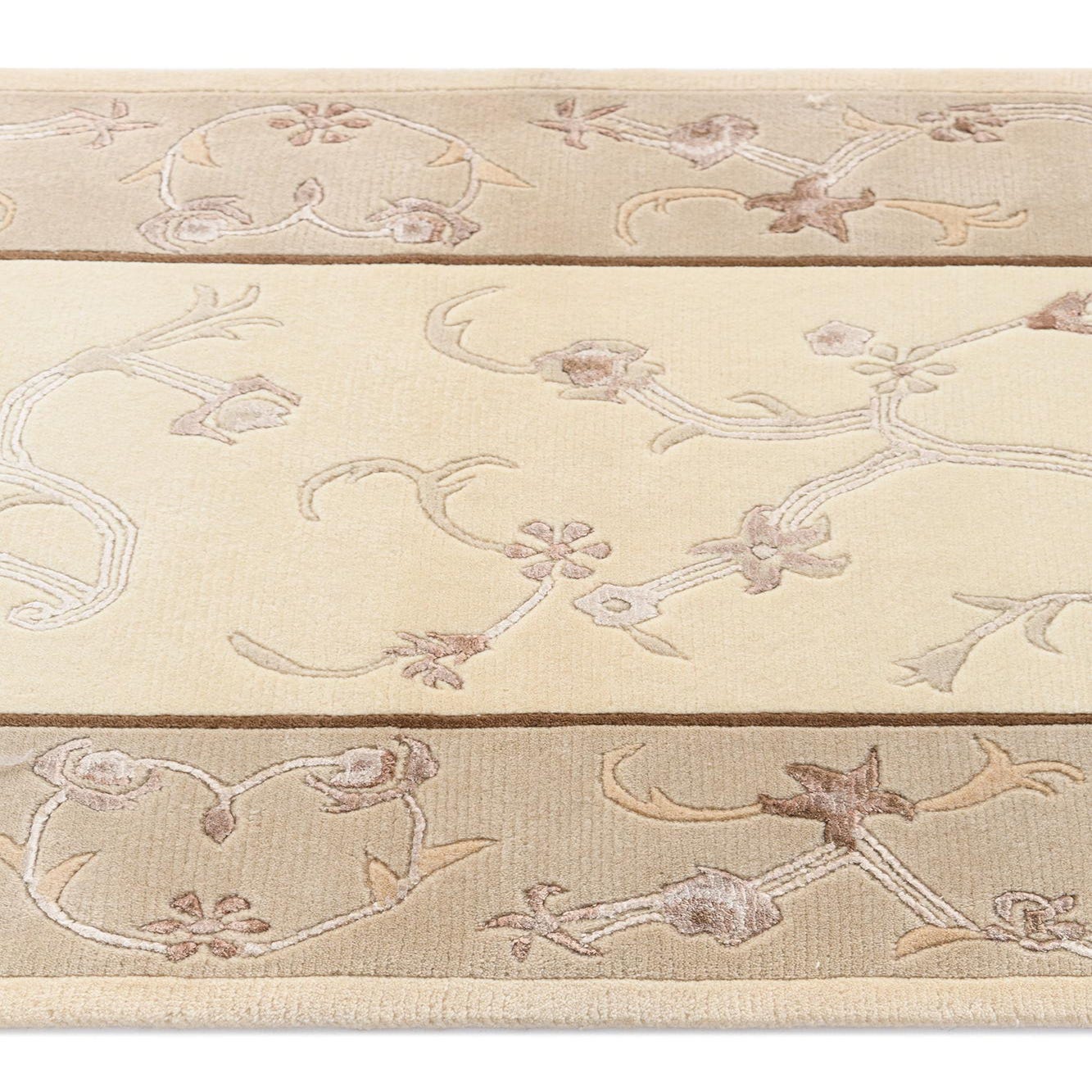 The Darya collection presents a 10 Ft Runner, handcrafted with precision from a blend of wool and cotton, offering durability and a soft underfoot experience. This runner features a beige background, complemented by an elegant, traditional pattern that incorporates colors such as beige, brown, ivory, light brown, rust red, and tan. The design showcases floral and botanical motifs, creating a classic yet versatile appearance suitable for enhancing long hallways or entryways.
