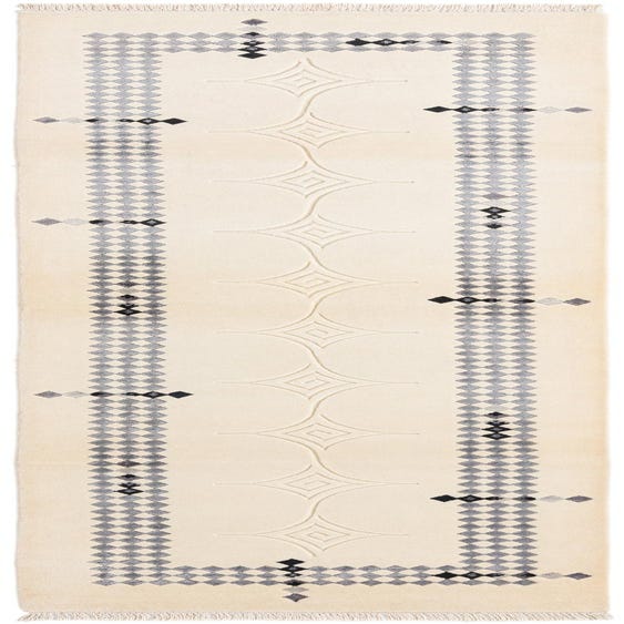 Primary color is Beige. Colors in this rug include: Beige, Black, Gray, Ivory.