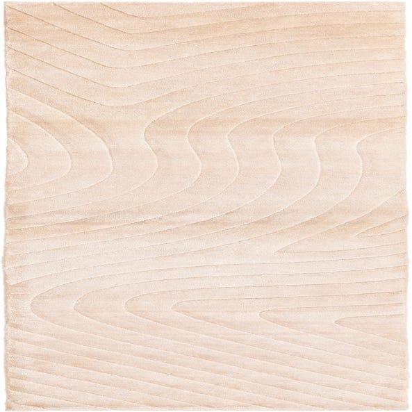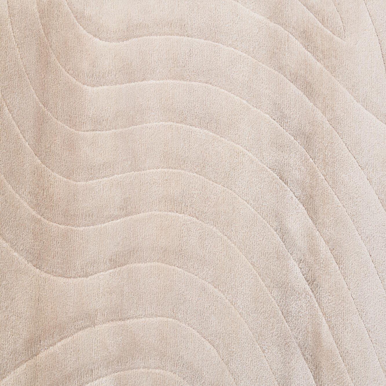 A 10 ft runner rug in shades of brown and tan, featuring a modern, abstract wave pattern, perfect for a hallway.