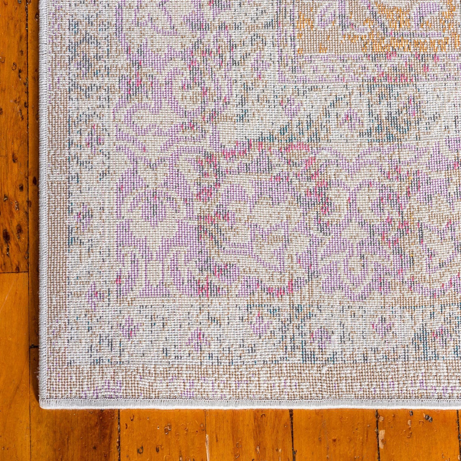 Primary color is Beige. Colors in this rug include: Beige, Light Blue, Light Brown, Orange, Purple, Pink.