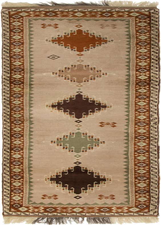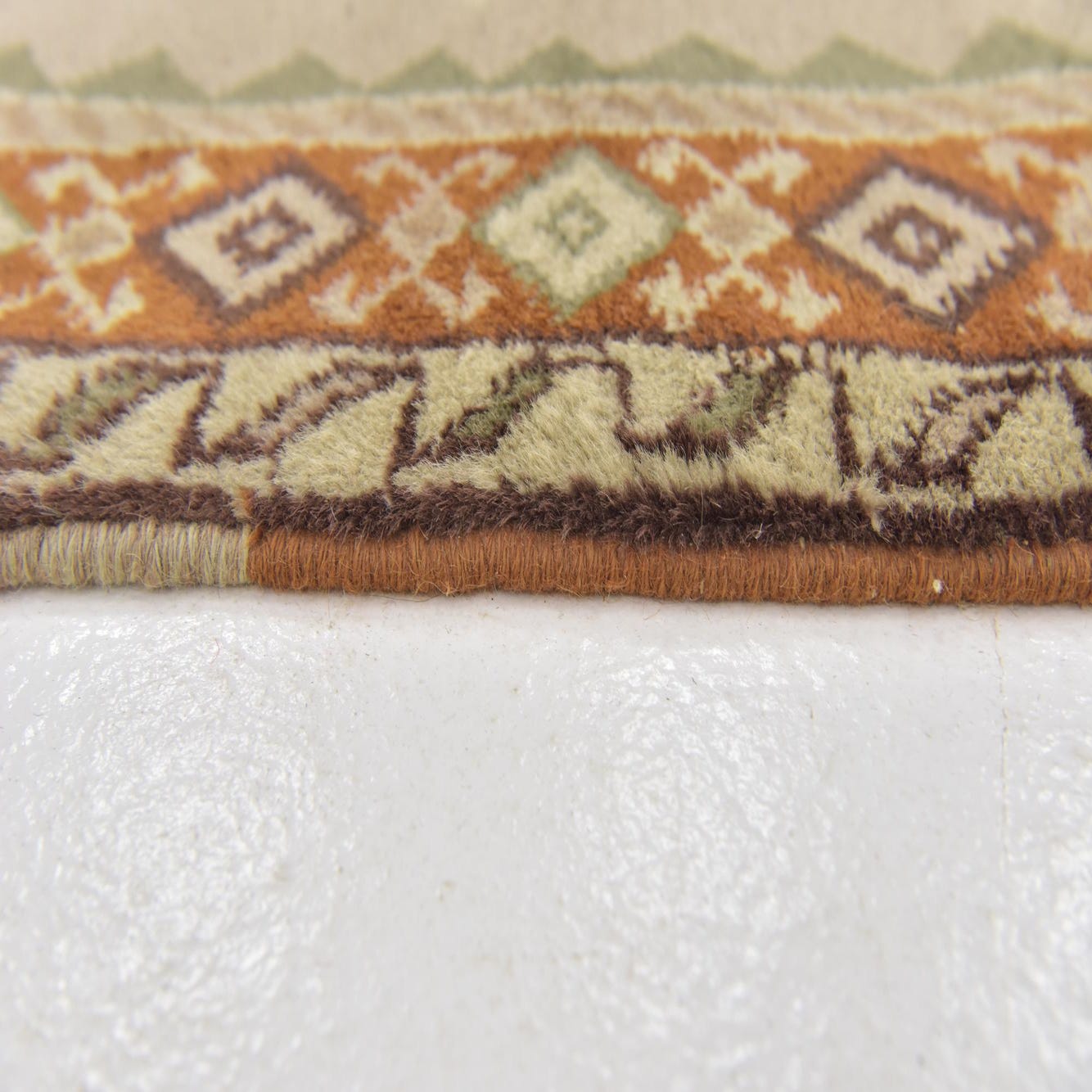 Primary color is Beige. Colors in this rug include: Beige, Black, Green, Light Brown, Brown, Ivory.