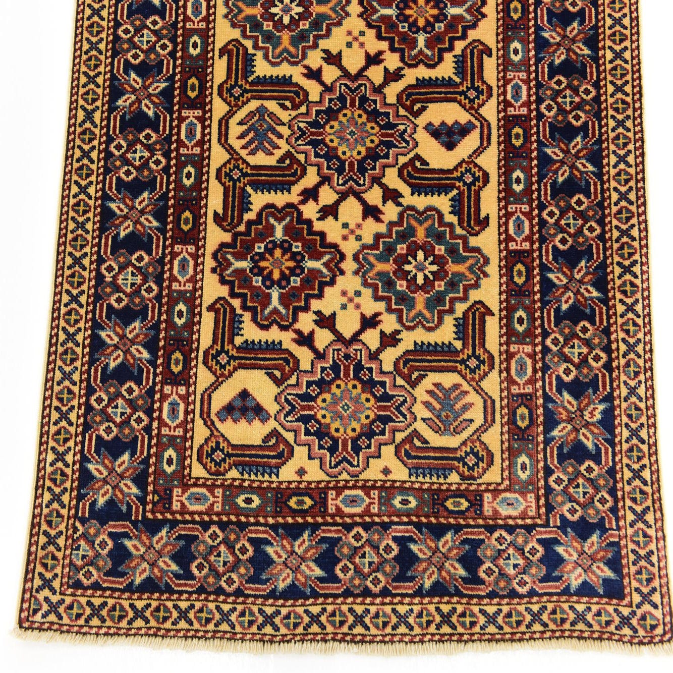 The Kazak Hand-Knotted Runner is a luxurious addition to any interior space that calls for a touch of traditional artisanship. This 10-foot runner is meticulously crafted from 100% hand-spun wool, ensuring a level of quality and durability that complements its aesthetic appeal.