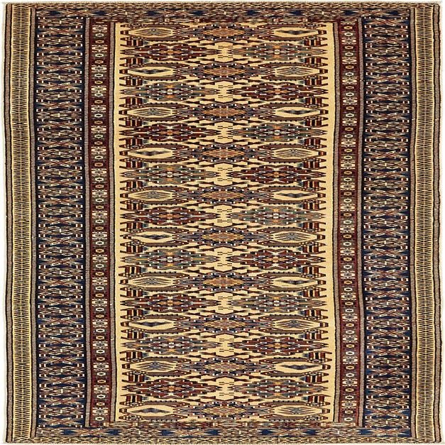 Primary color is Beige. Colors in this rug include: Beige, Blue, Green, Black, Burgundy, Red, Navy Blue.