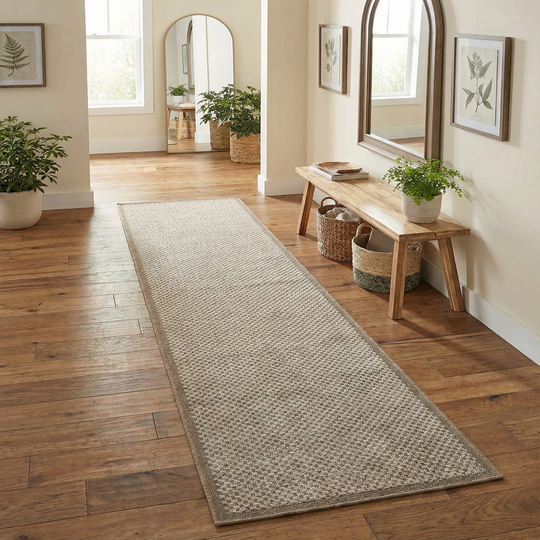 This runner works well in hallways, entryways, kitchens, mudrooms or covered porches where a low-profile layer is needed to define a path. Pair it with natural wood furniture, woven accents or metal-framed pieces for a balanced, relaxed look; cool blue or charcoal accessories will pick up the gray flecks and add contrast. Its understated pattern and neutral palette suit modern coastal, minimalist, or casual farmhouse interiors and provide a subtle backdrop that complements rather than competes with existing furnishings.