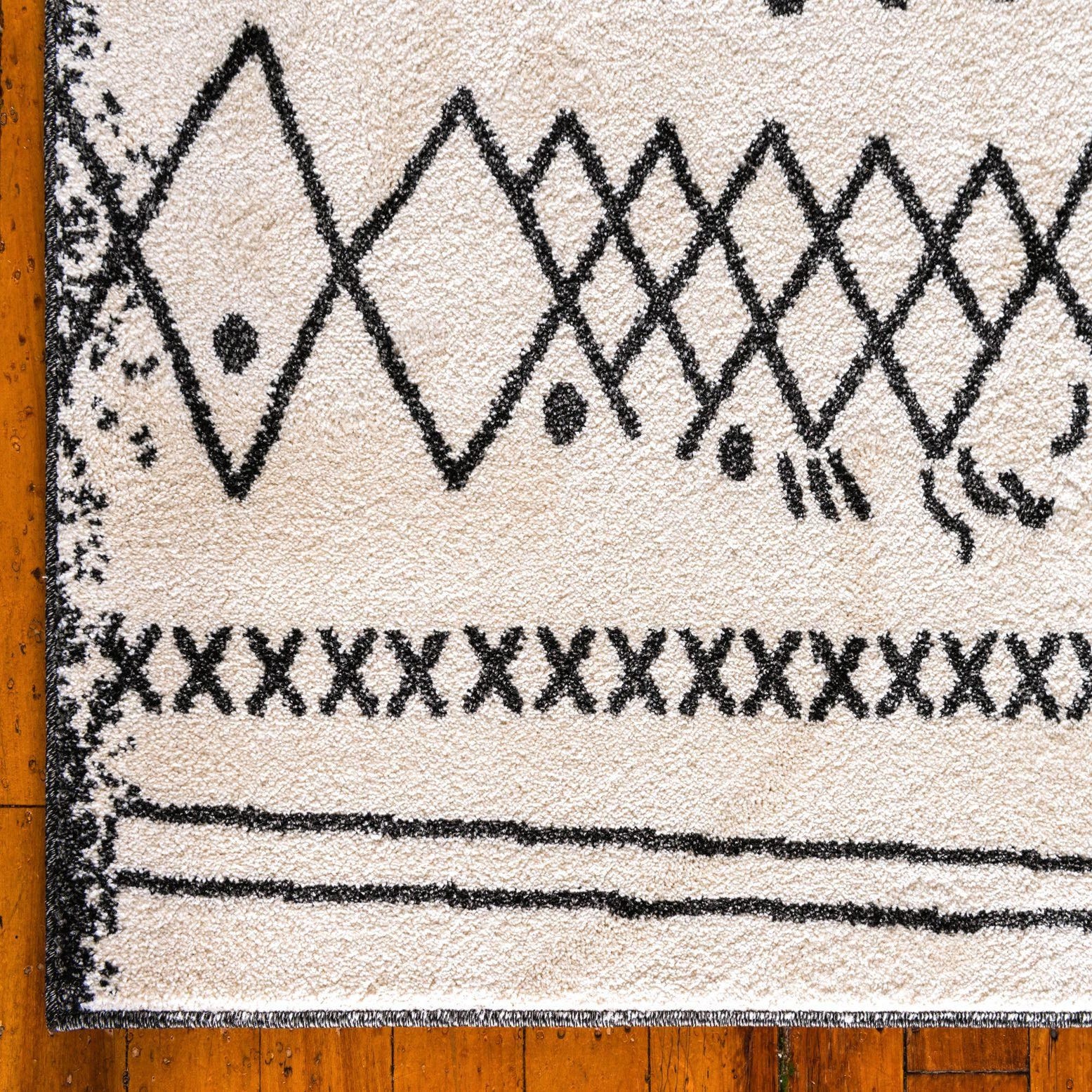 Primary color is Beige. Colors in this rug include: Beige, Black.