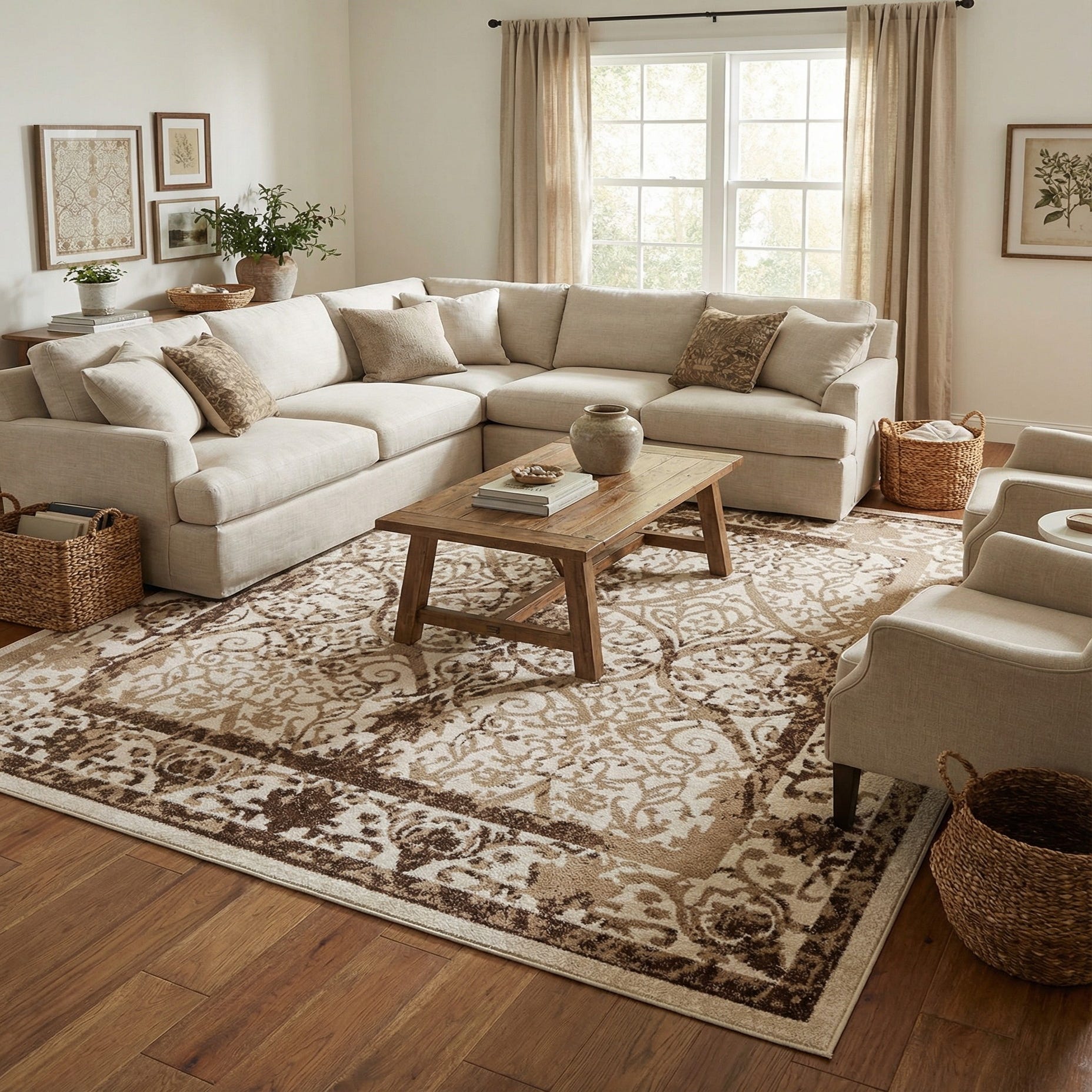 Primary color is Beige. Colors in this rug include: Beige, Brown, Ivory, Light Brown.