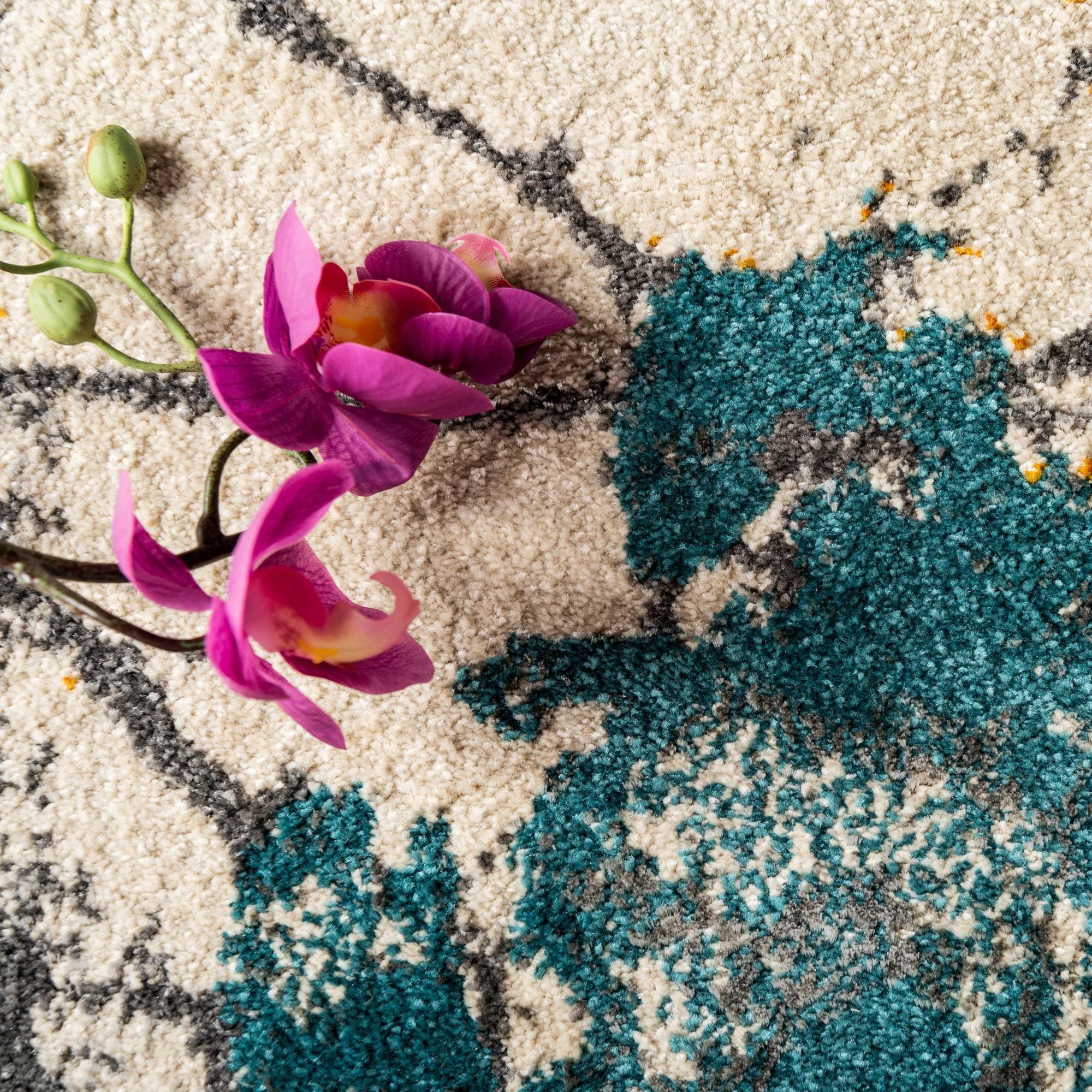 Primary color is Beige. Colors in this rug include: Beige, Blue, Gold, Gray, Ivory, Orange, Yellow, Pink.