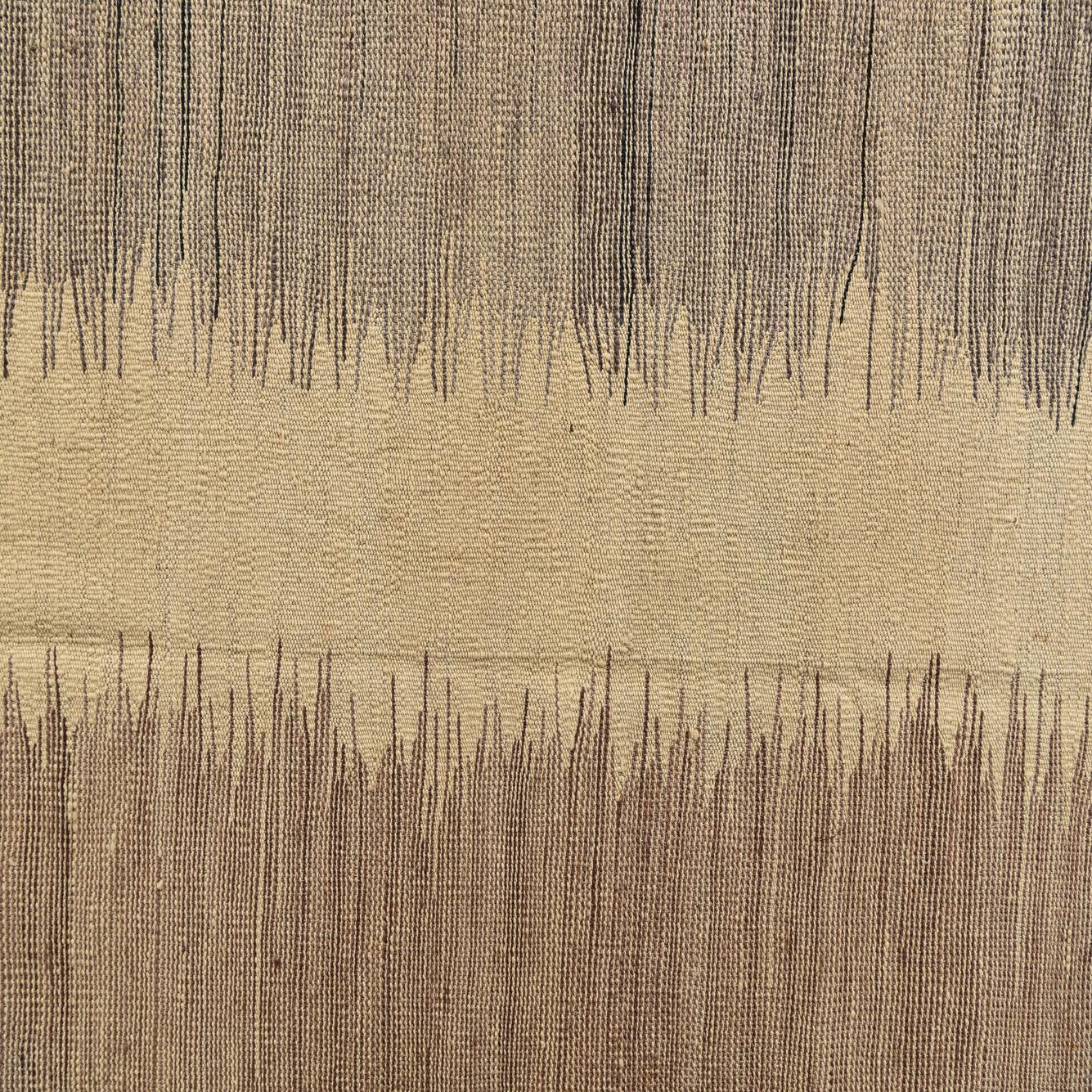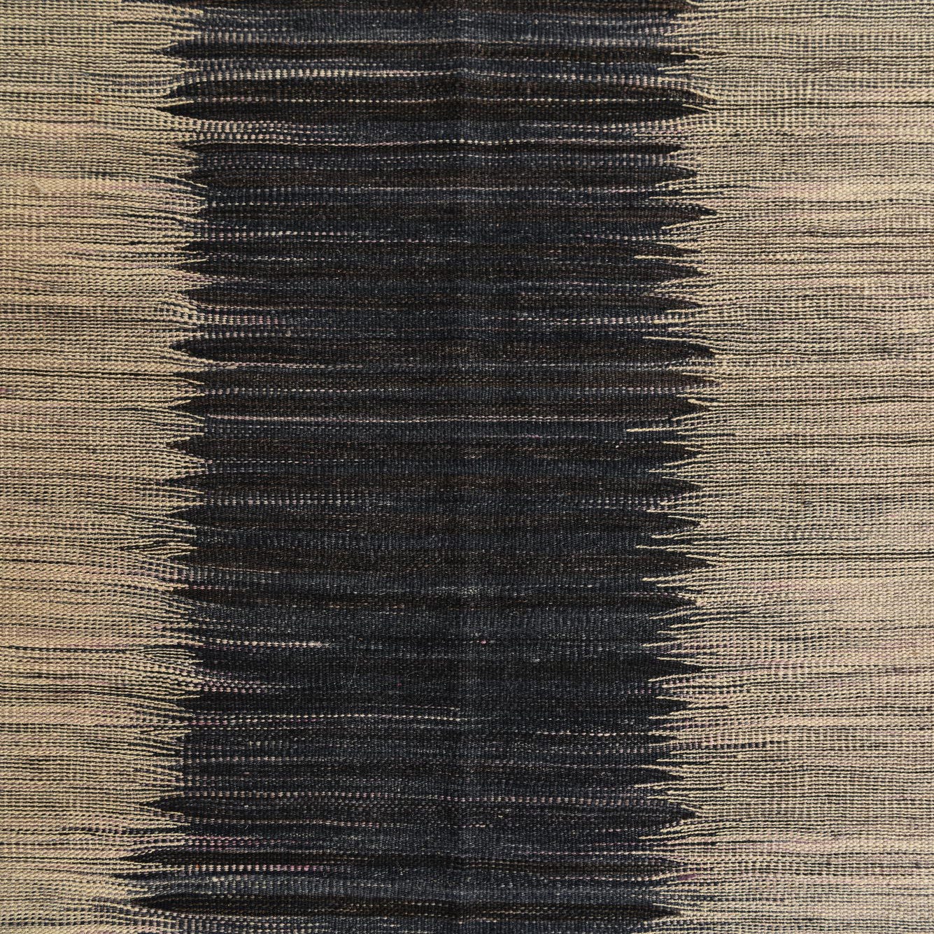The rug's pattern is characterized by a contemporary interpretation of traditional Kilim designs, offering both visual interest and texture to any space. The simplicity of the design allows it to be versatile in its placement; this rug can complement a modern minimalist decor, add a warm anchor to a Scandinavian-themed room, or even provide a neutral yet striking base in an eclectic setting. Suitable for a spacious living area, a sleek office, or a refined dining room, this piece can easily integrate with both neutral and bold color schemes.