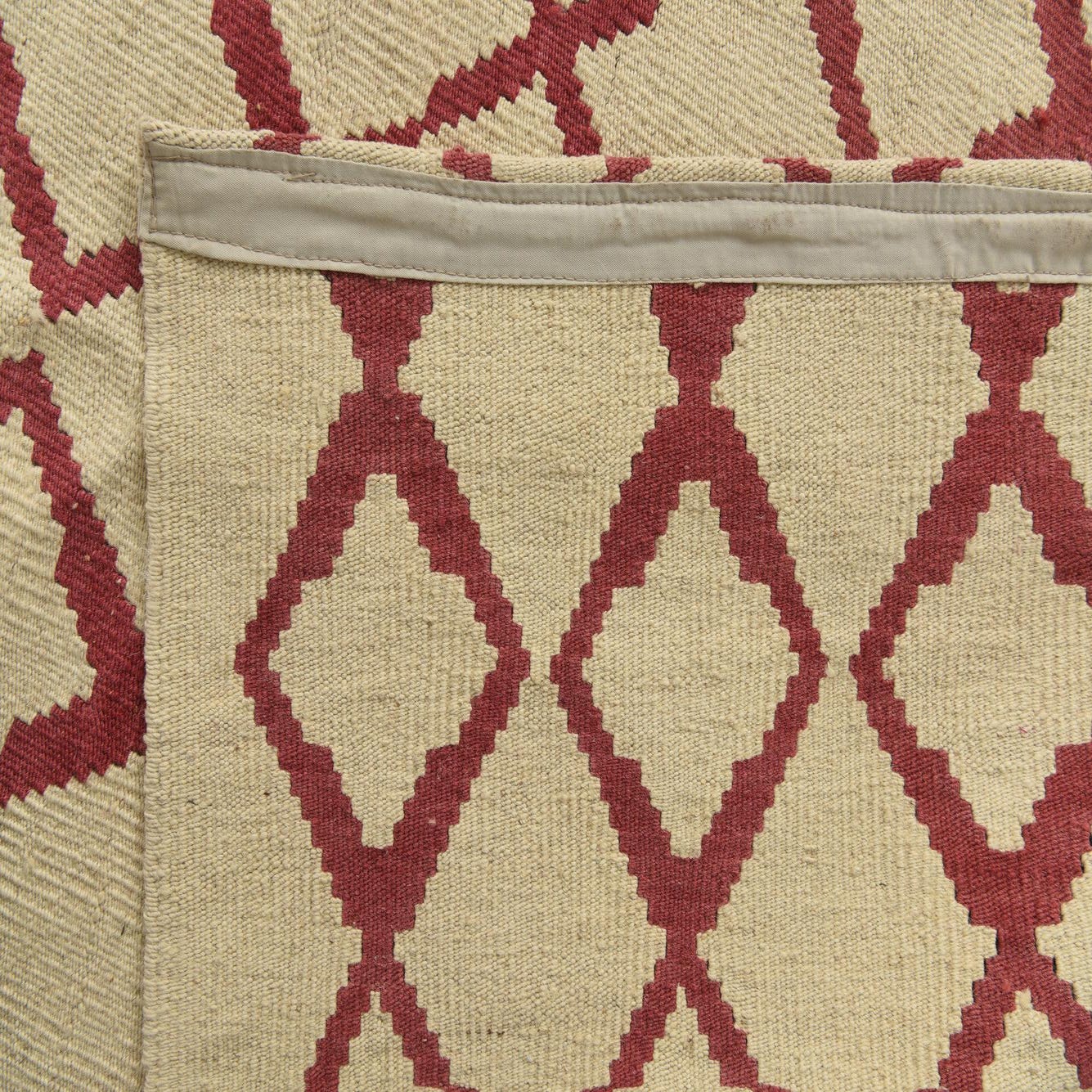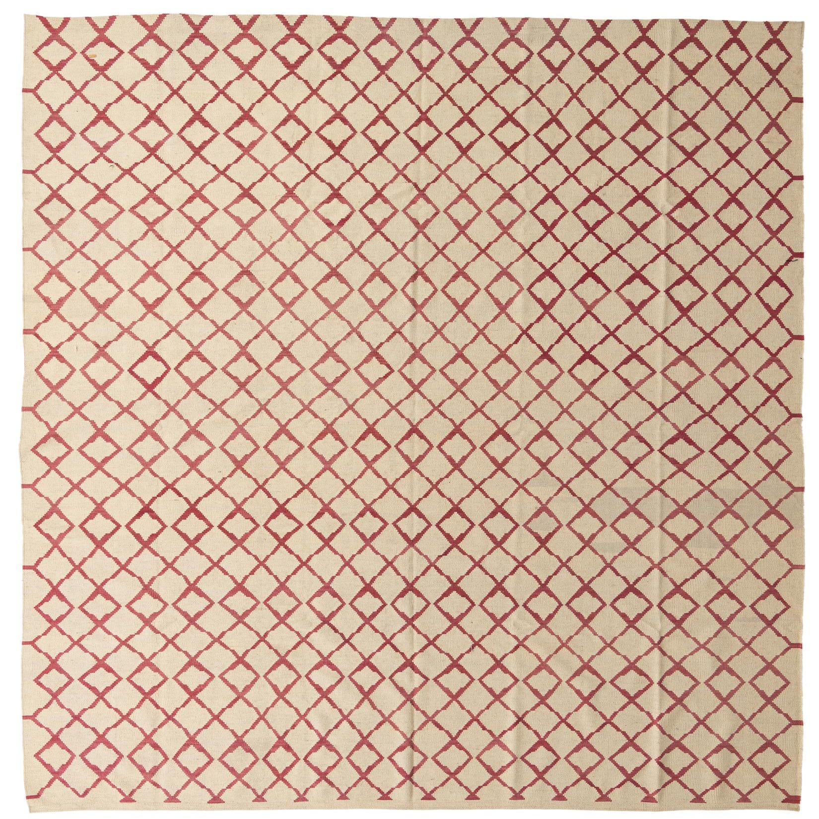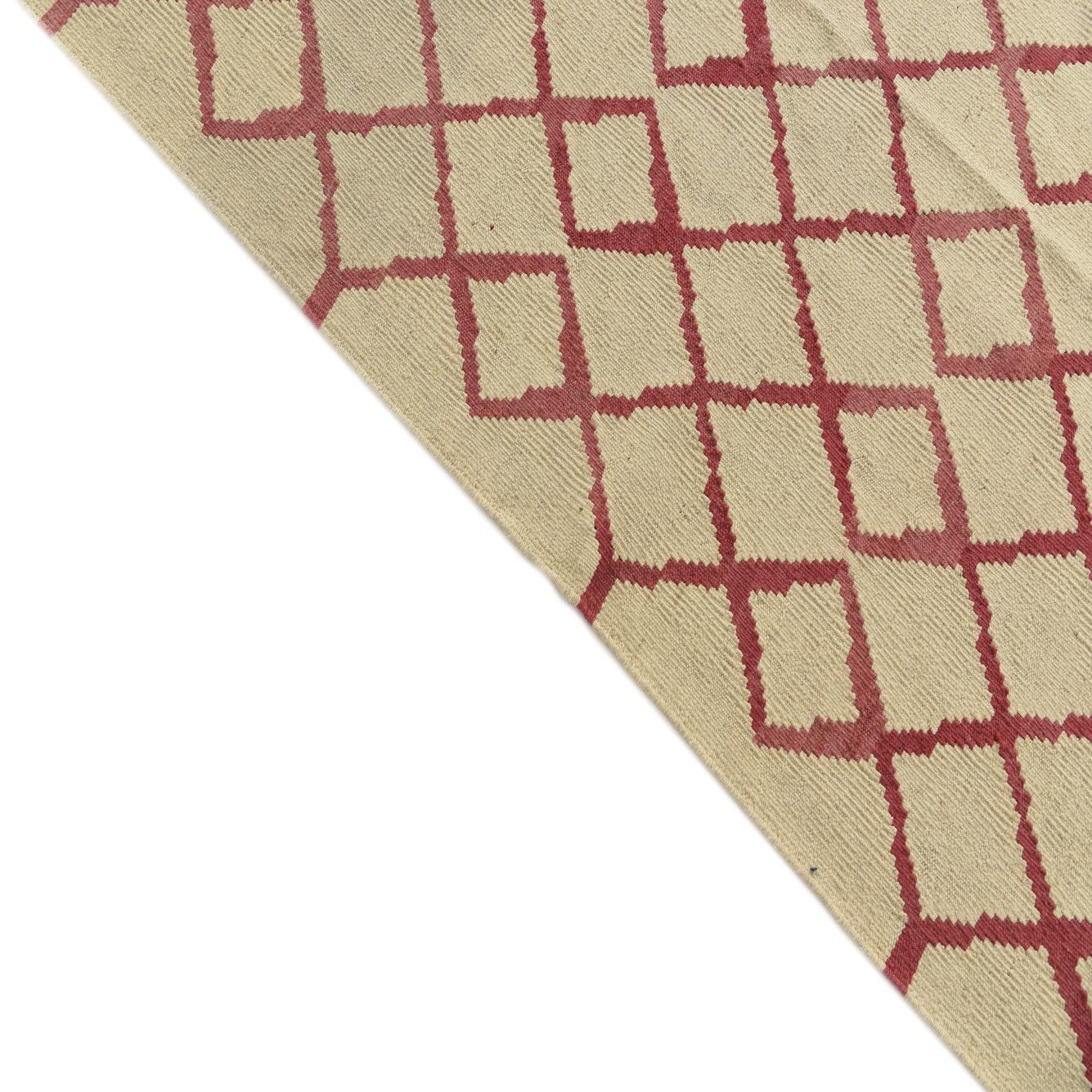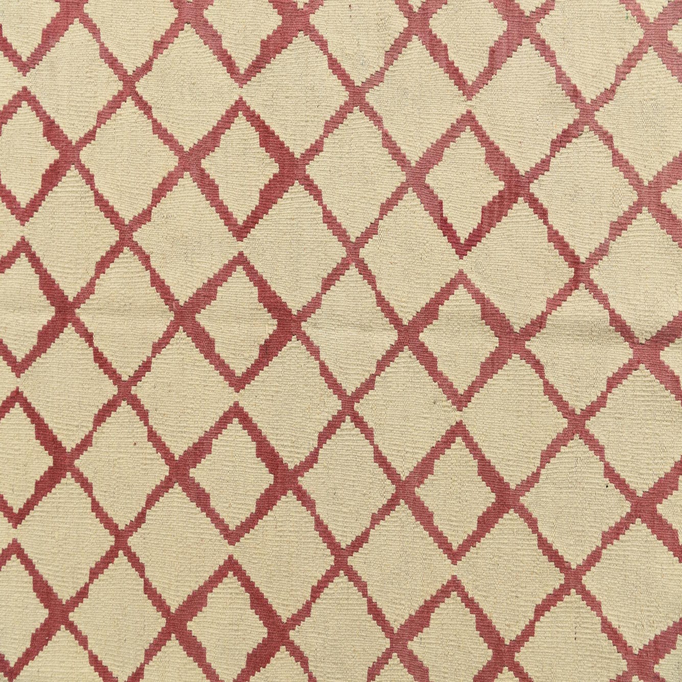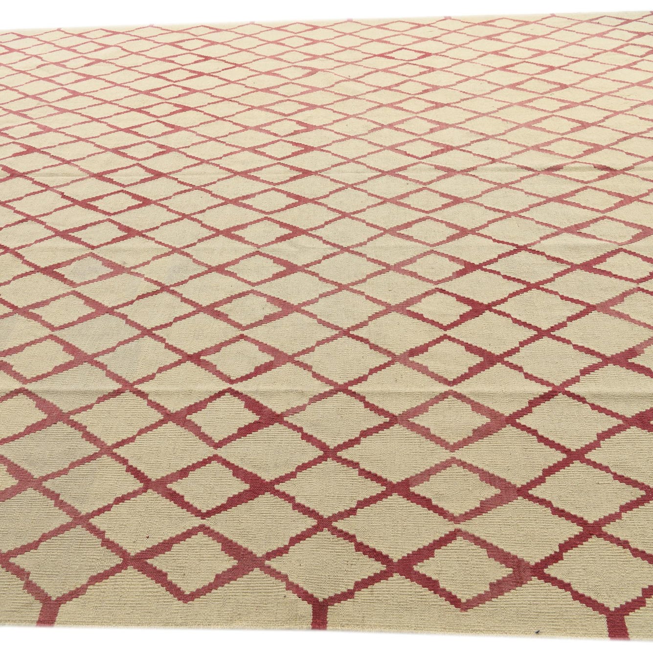 A 10x13 rectangular Kilim Modern wool rug featuring a repeating tribal diamond pattern in muted red on a cream background.