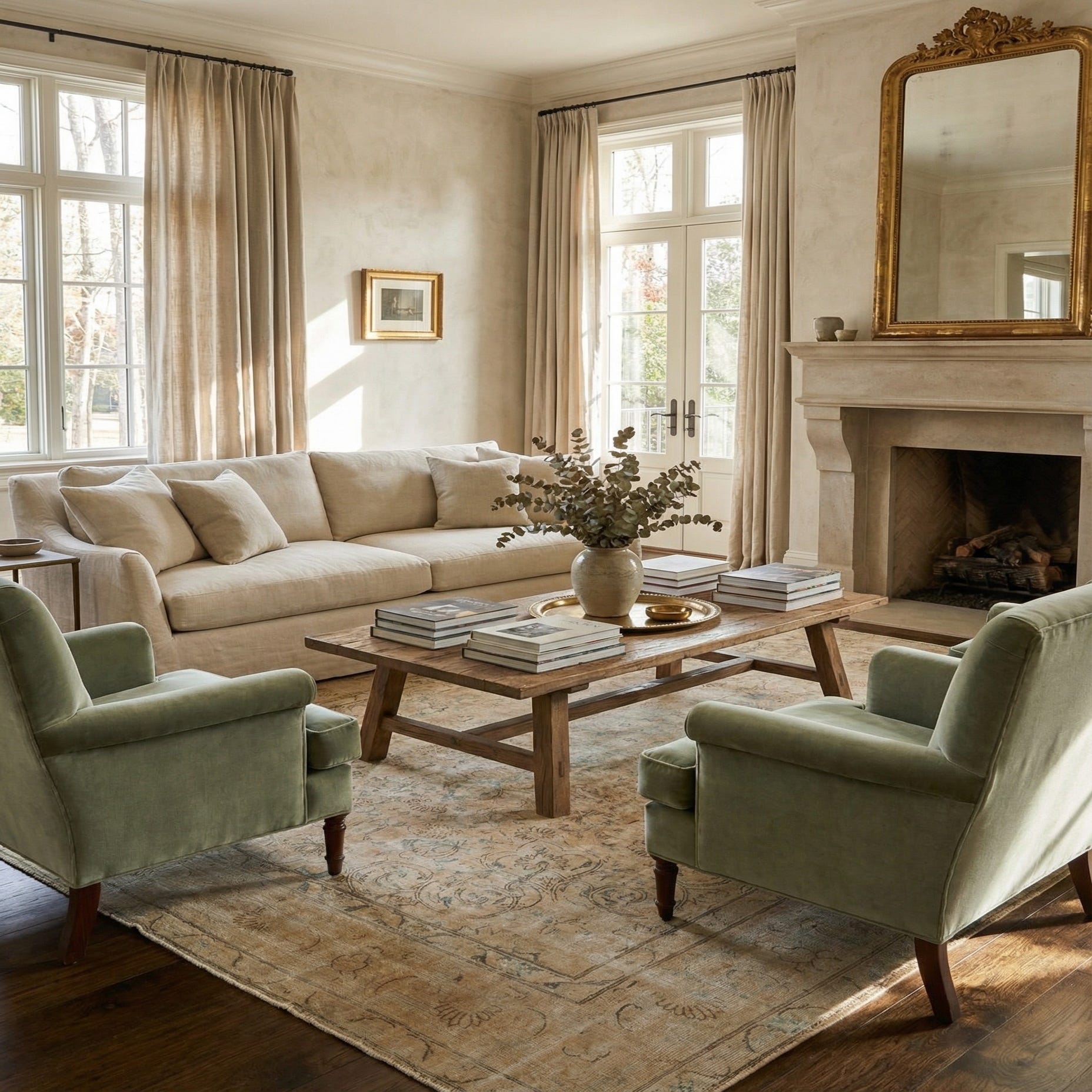 This rug would integrate seamlessly into interiors that favor classic, traditional, or even transitional decor styles. It is well-suited for a formal living room, dining area, or a spacious bedroom where its refined aesthetic and soothing colors create a peaceful and grounded atmosphere.