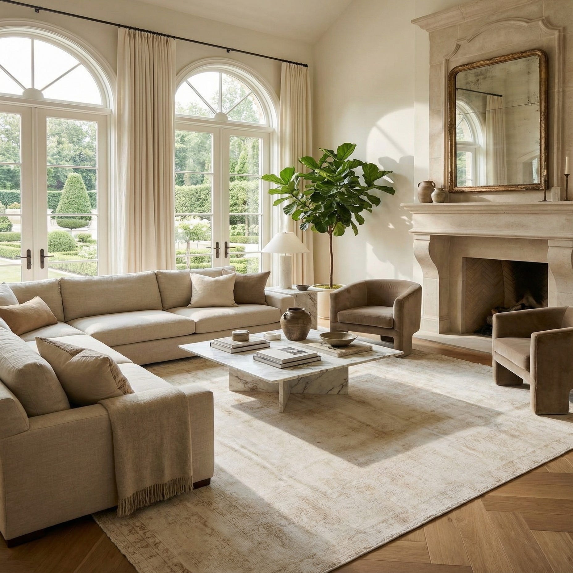 This rug works well as an anchor for a seating area, beneath a dining table, or layered at the foot of a bed to introduce quiet warmth without overwhelming other finishes. It pairs naturally with light woods, linen upholstery, leather sofas, and warm metal accents, and complements Scandinavian, transitional, modern farmhouse, or minimalist interiors where texture and soft tonal variation are needed.