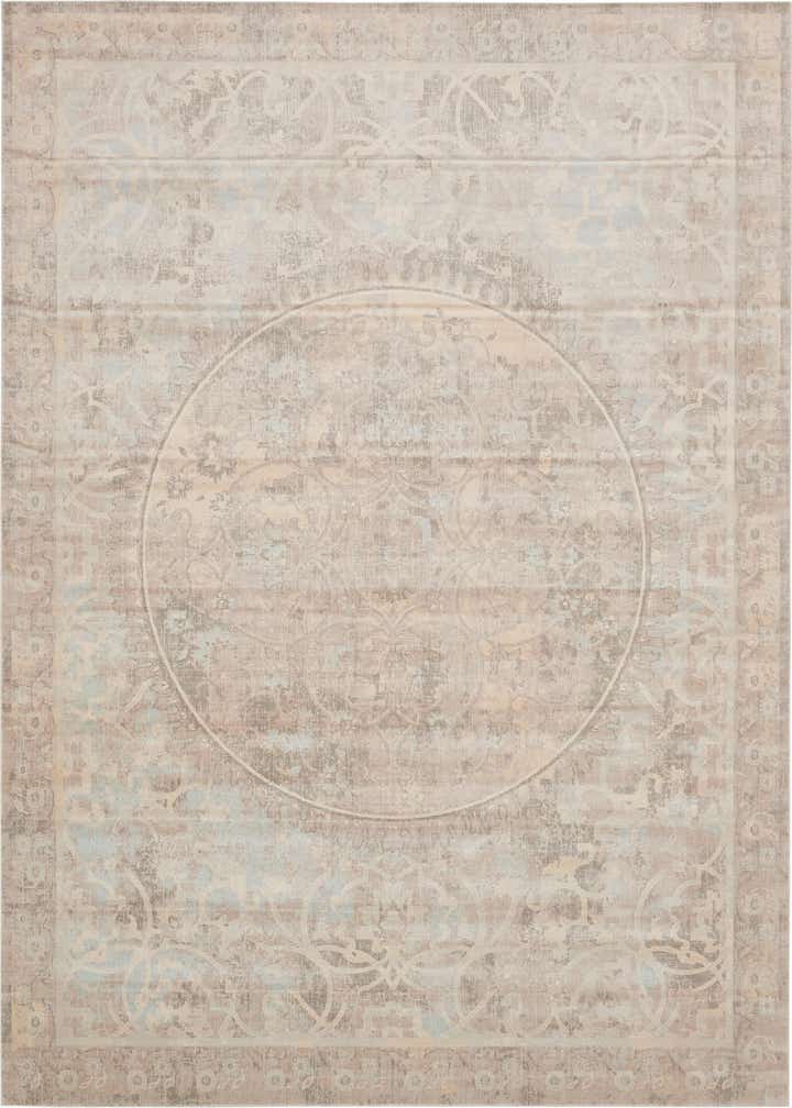 Primary color is Beige. Colors in this rug include: Beige, Gray, Light Blue, Brown, Tan.