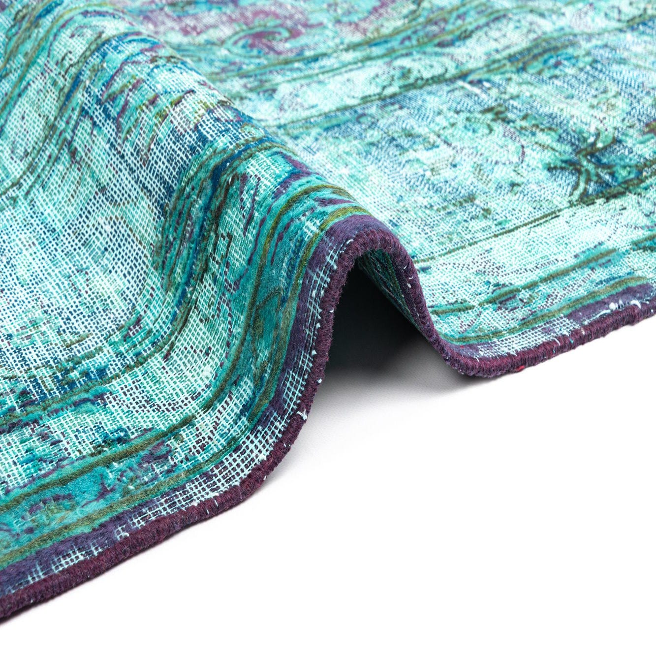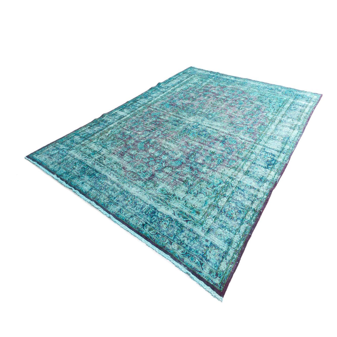 A rectangular 10x13 Vintage Royal Persian rug in distressed teal and purple tones, featuring an intricate floral pattern and border.
