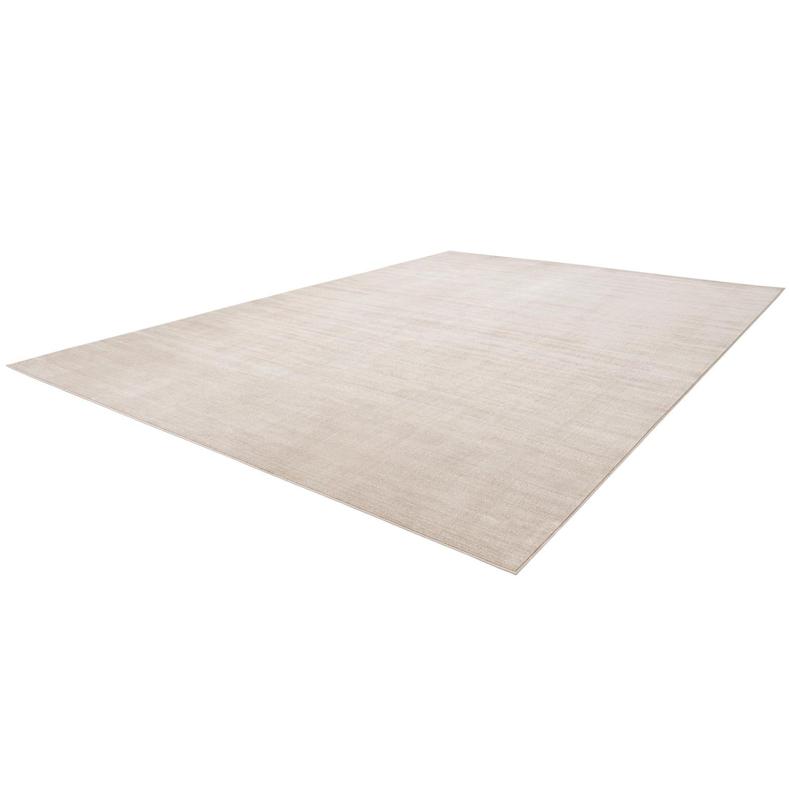 Machine-made from 70% polypropylene and 30% polyester, this rug has a low, velvety pile that feels soft underfoot and holds a subtle sheen. The design is intentionally restrained: a beige field with fine horizontal striations that create gentle depth and a whisper of movement across the surface. The overall effect is tactile and textural rather than bold—an understated, contemporary style that brings warmth without competing with other elements in the room.