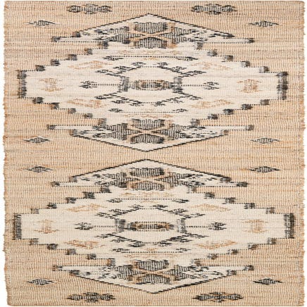 Primary color is Beige. Colors in this rug include: Beige, Black, Ivory.