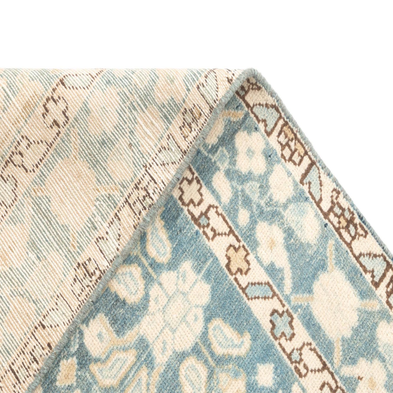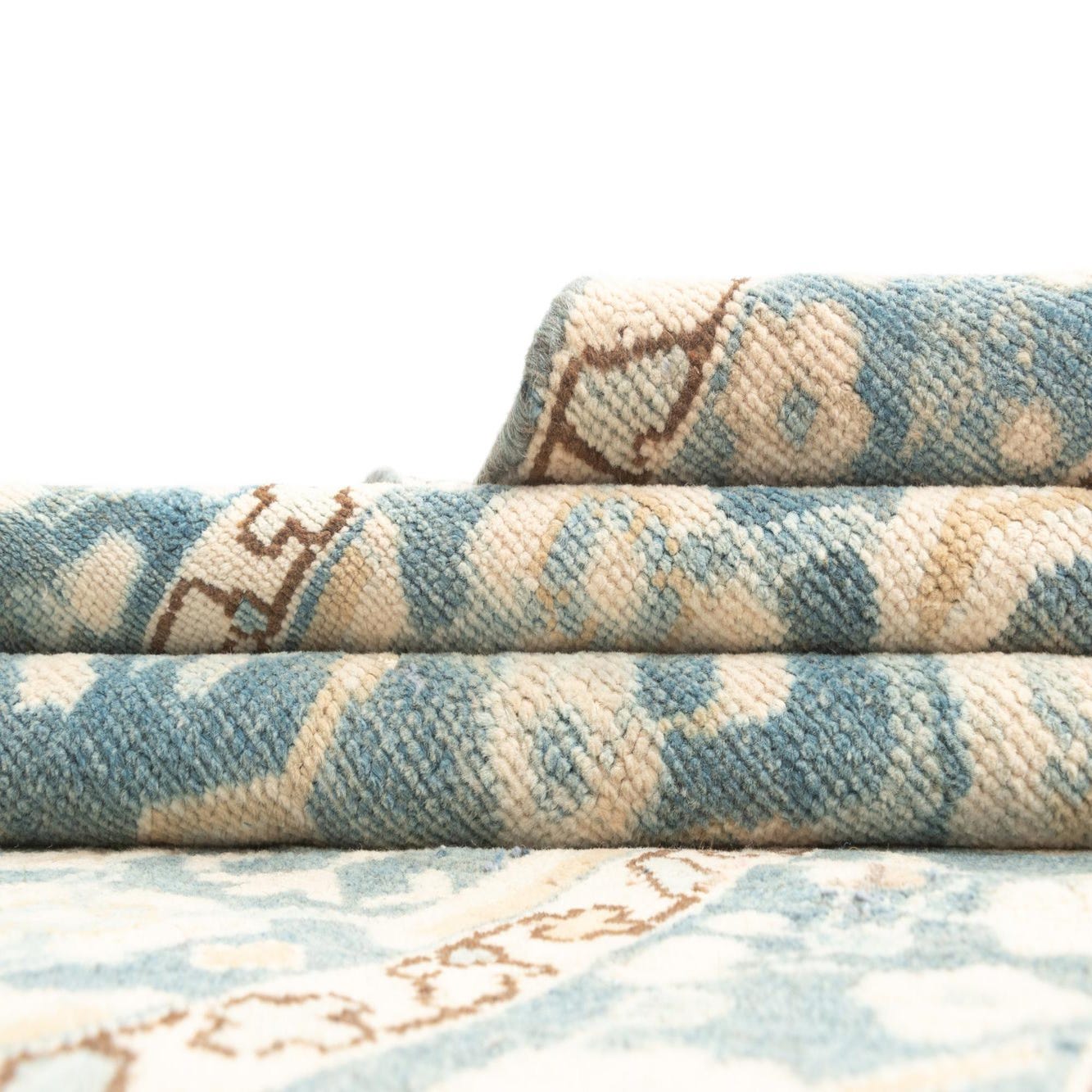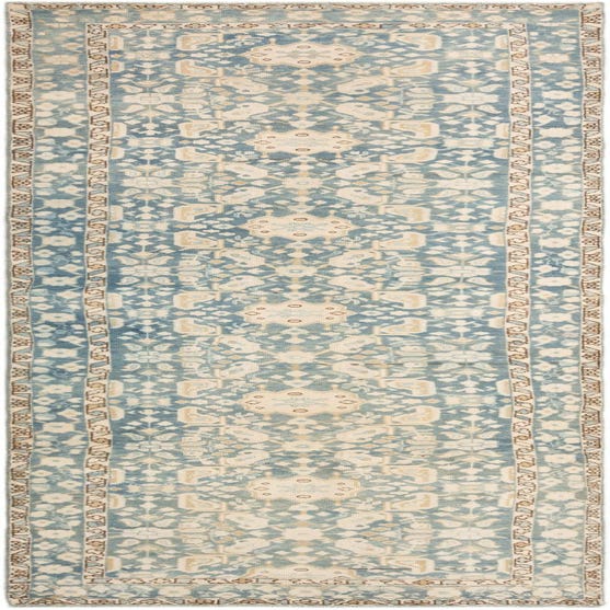 Primary color is Beige. Colors in this rug include: Beige, Light Blue, Brown.