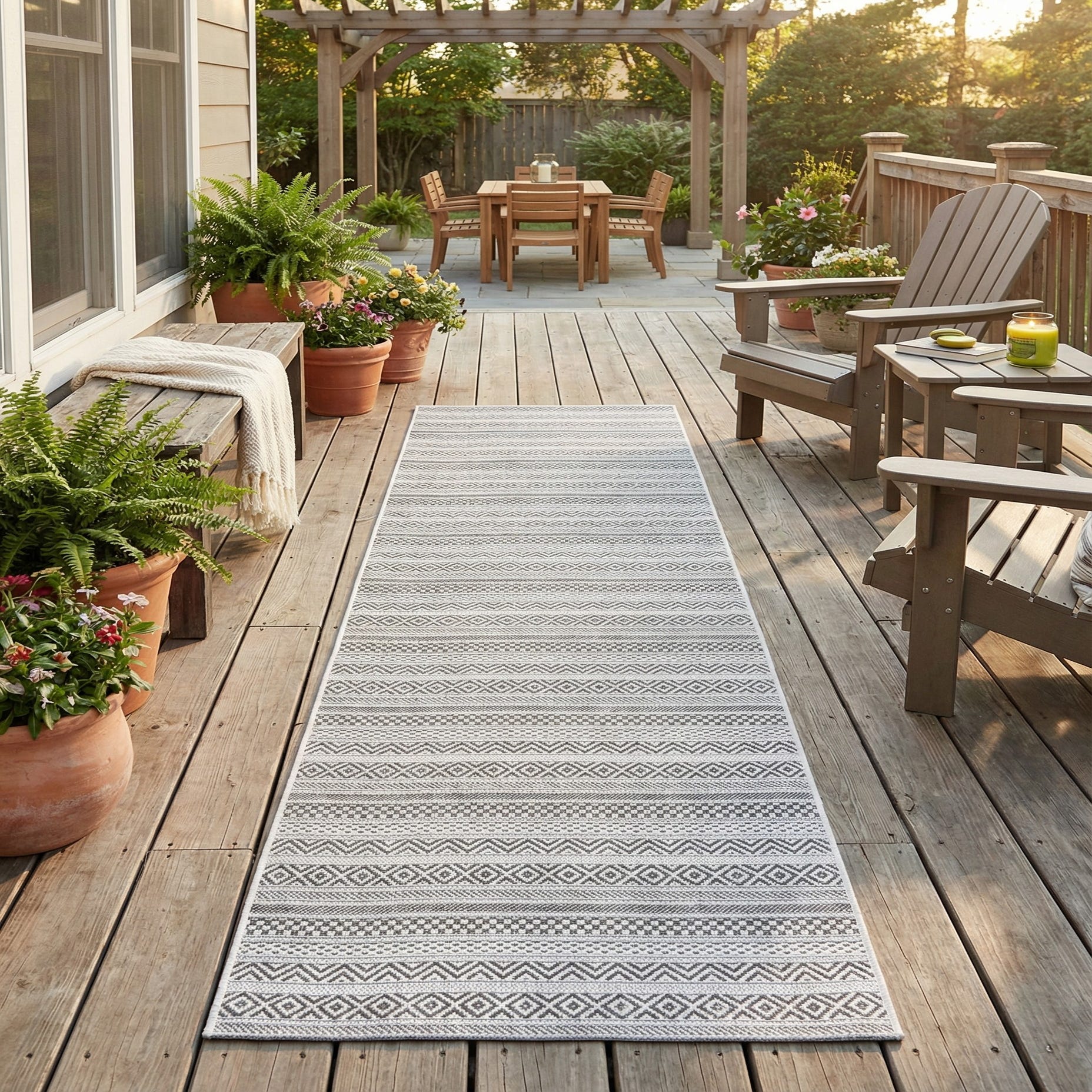 2' 7 x 12' Washable Ribbon Indoor / Outdoor Runner Rug