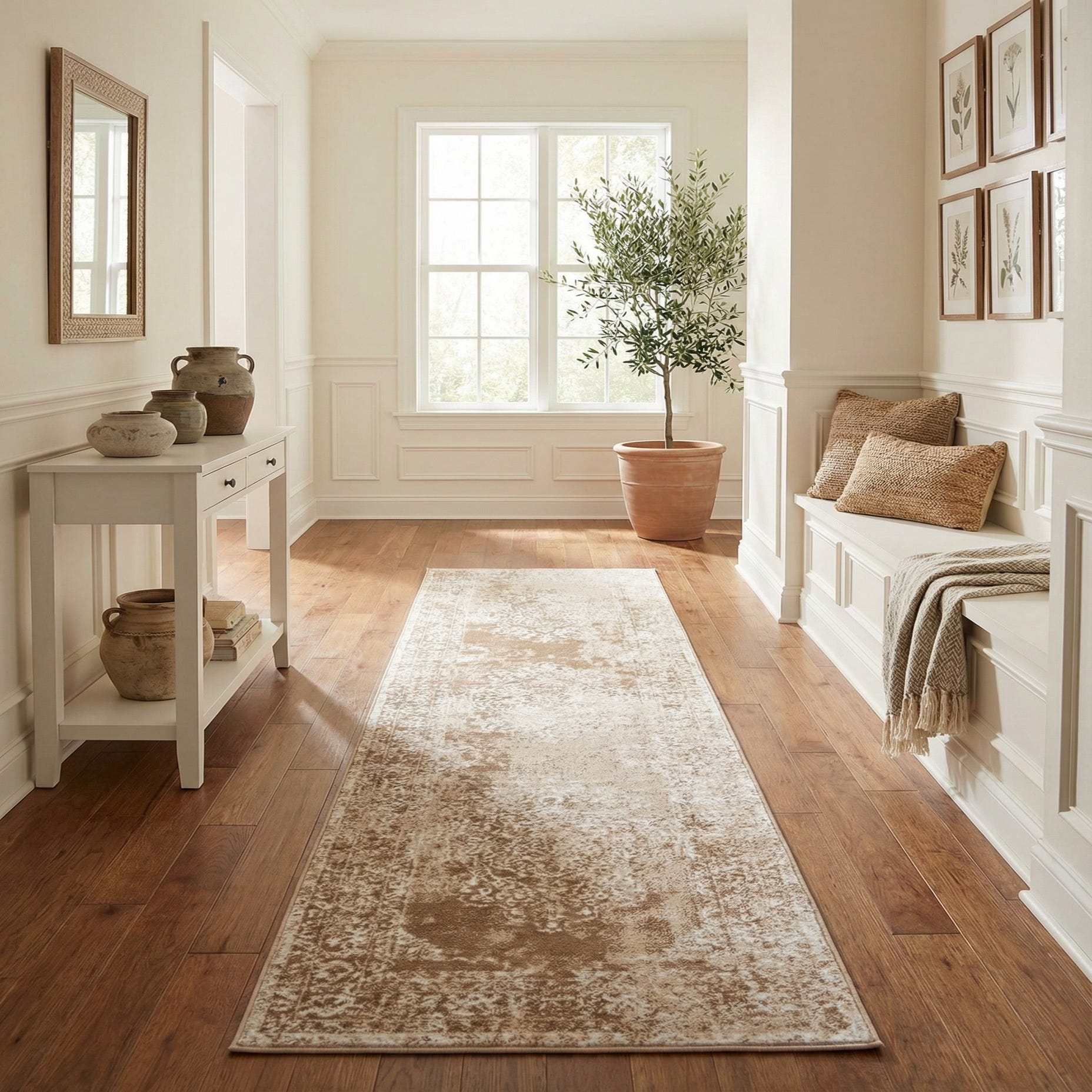 This runner works well in a long entryway or hallway to guide traffic while keeping a neutral, elegant presence. It pairs naturally with warm wood floors, linen upholstery and brass or matte-black accents, and complements transitional, modern farmhouse, coastal, or Scandinavian interiors. Use it alongside a bed to add softness to a bedroom aisle or in a narrow kitchen to provide a warm, low-maintenance layer beneath stools or a console.