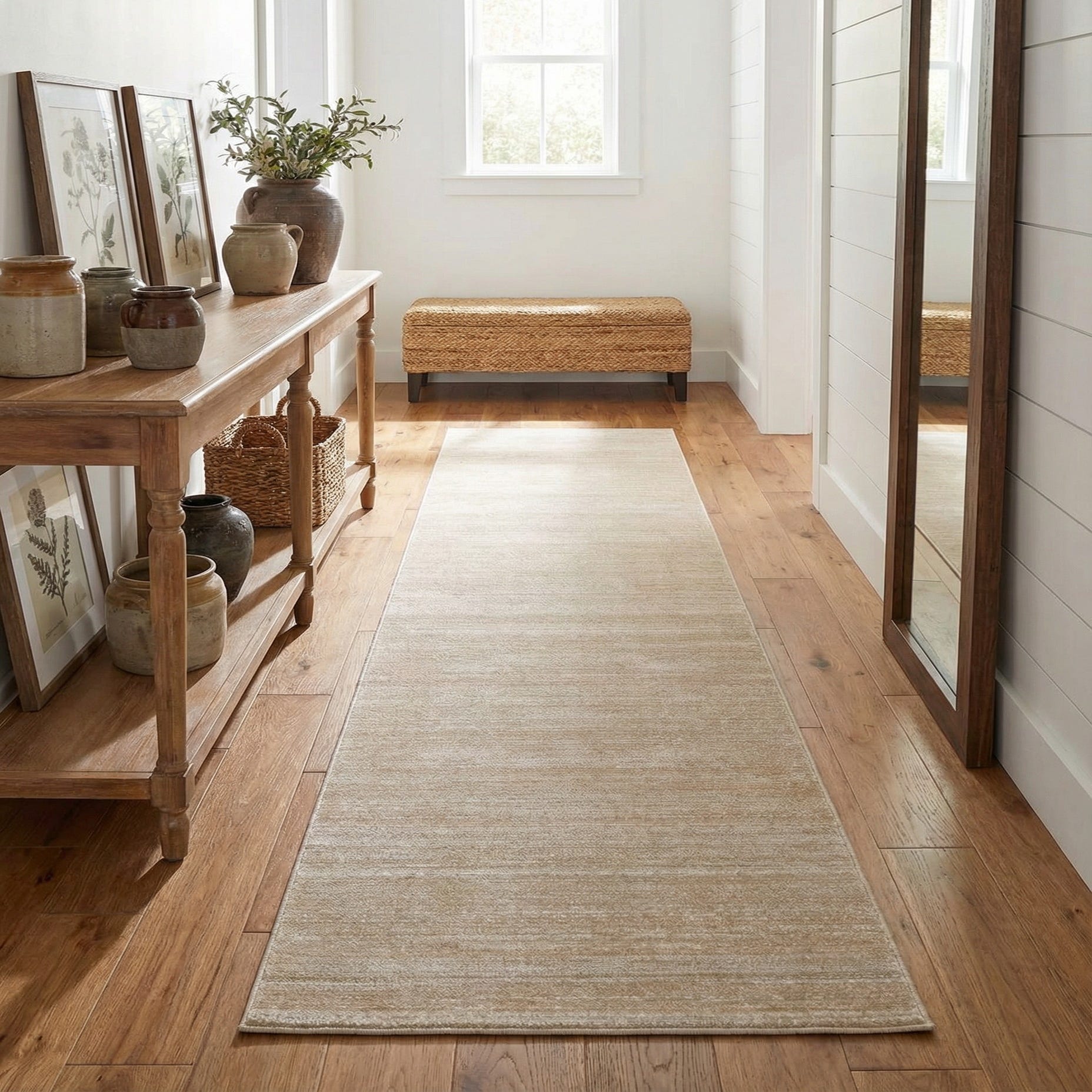 This runner works well in hallways and entryways or alongside beds to warm narrow walkways. It pairs nicely with natural wood finishes, linen or cotton upholstery, and matte metal accents for a modern farmhouse or Scandinavian-inspired interior, and can also support a minimalist or transitional scheme where subtle texture is needed. Layer it with a patterned area rug in an open-plan living space or place beneath a console table to anchor a calm, cohesive vignette.