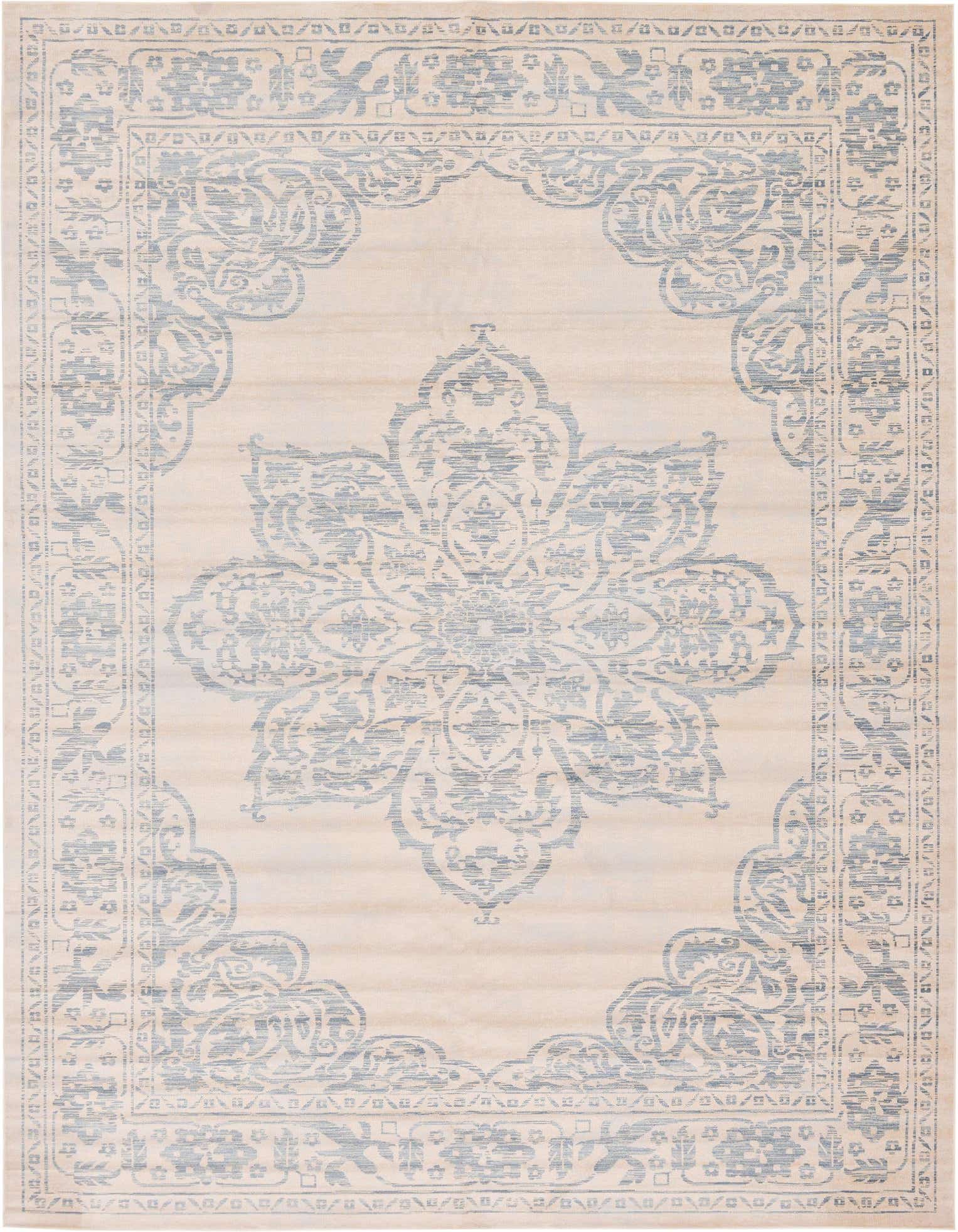Primary color is Beige. Colors in this rug include: Beige, Blue.