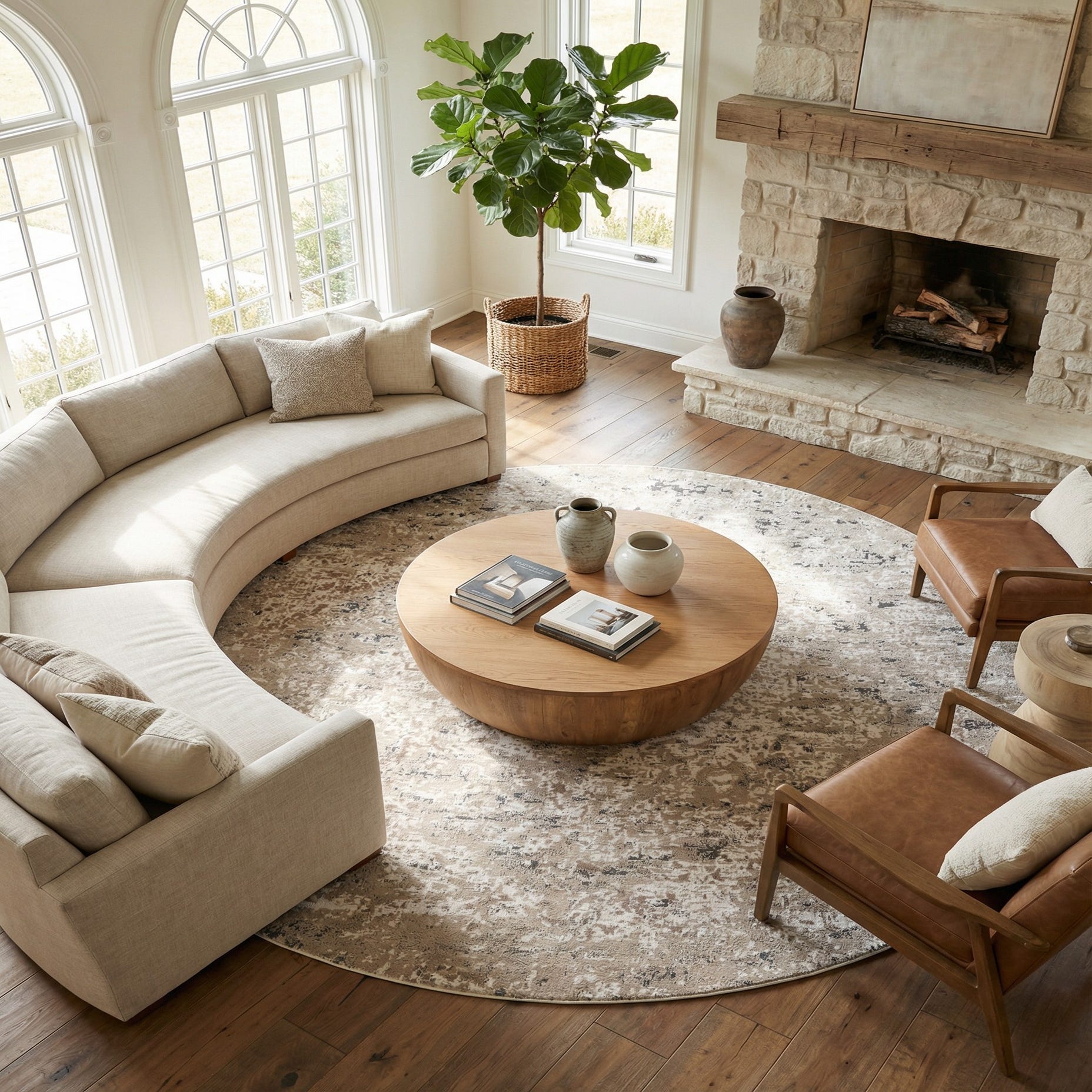 Machine made from 85% polypropylene and 15% polyester, this rug pairs easily with a variety of interiors. Place it beneath a round dining table to define the meal area, use it to anchor a cozy conversation group in a neutral living room, or layer it under a bed bench to soften a bedroom vignette. It complements warm wood tones, linen upholstery, and industrial metal accents, and works well in transitional, modern farmhouse, or soft contemporary schemes.