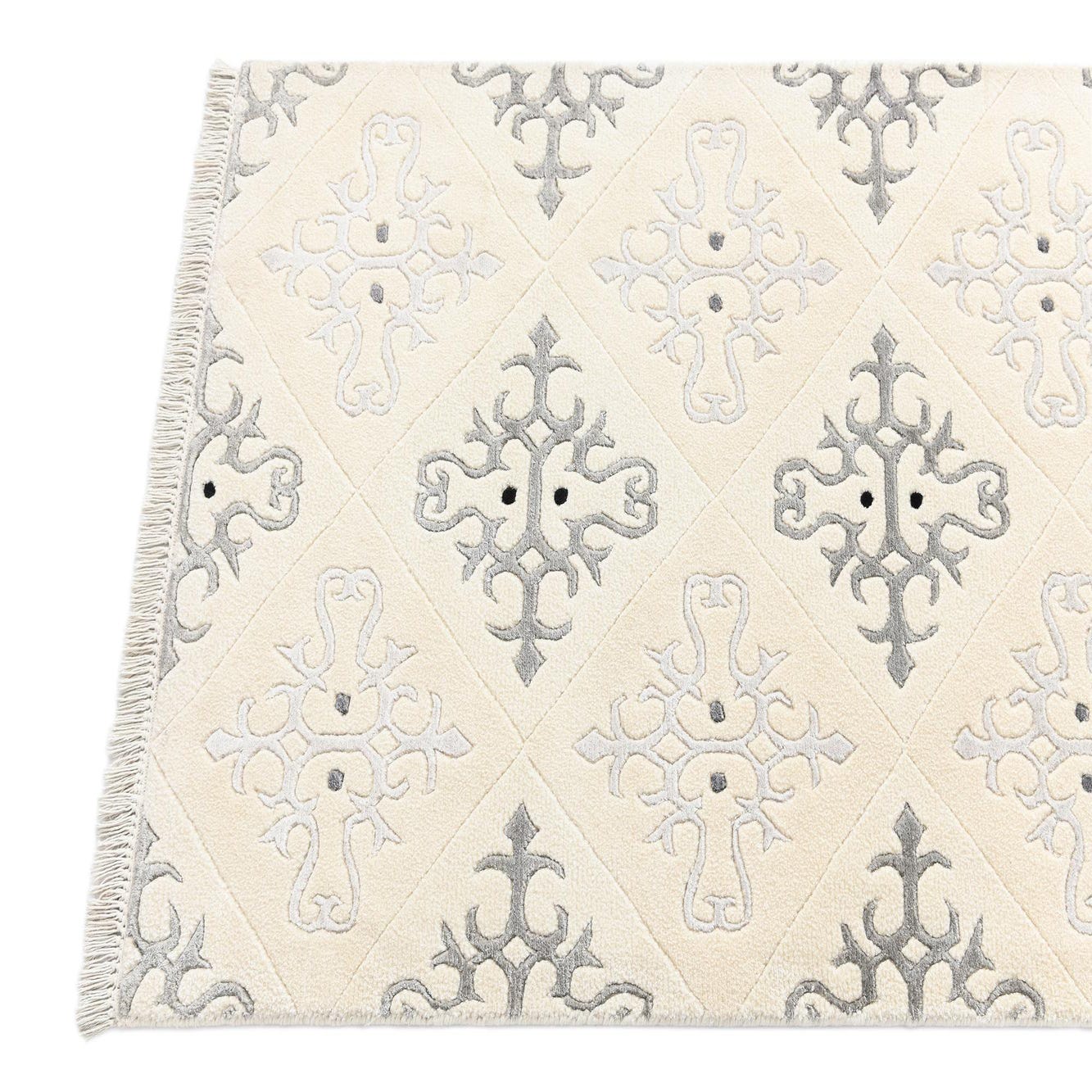 Primary color is Beige. Colors in this rug include: Beige, Black, Gray.