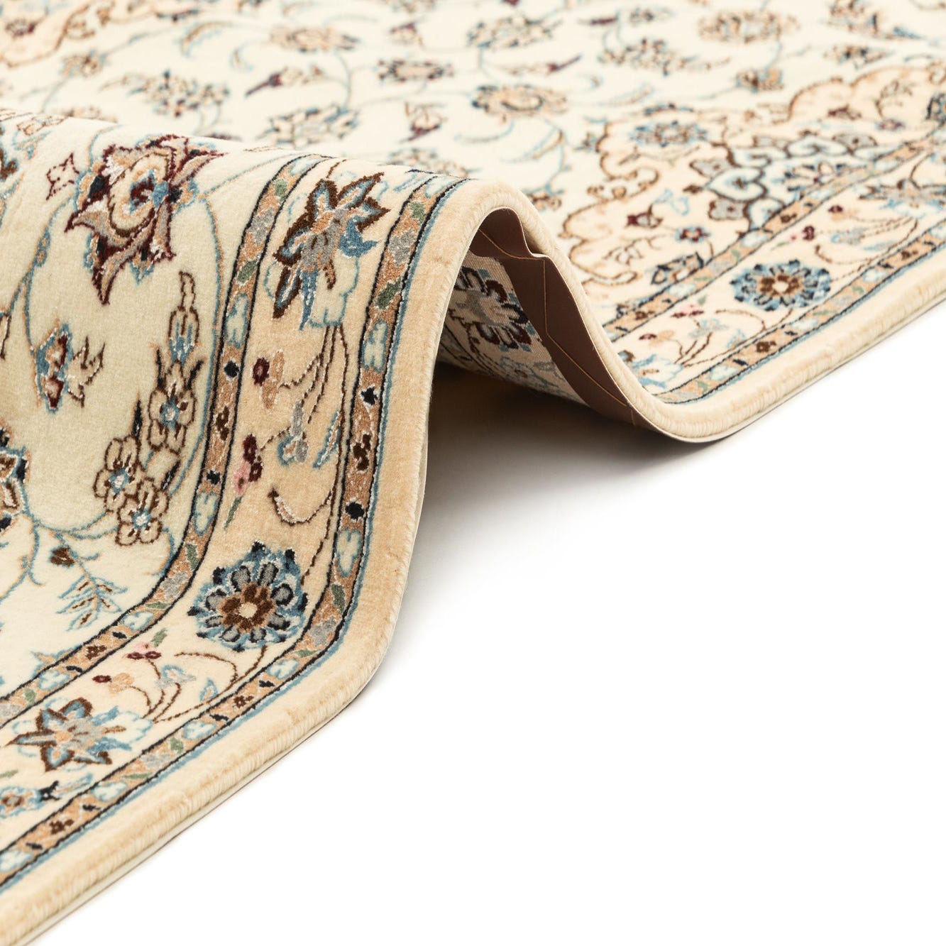 A 13 ft runner rug from Rugs.com's Nain collection, featuring a cream background with intricate brown and blue floral patterns, perfect for a hallway.