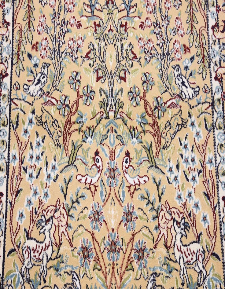 The Nain Design 13 Ft Runner rug boasts a sophisticated pattern that melds traditional motifs with a rich color palette, creating a piece that complements a variety of interior design themes. Centered around a beige background, the intricate design incorporates shades of blue, burgundy, cream, green, ivory, navy blue, and puce, displaying a harmonious blend of hues that are both warm and inviting.
