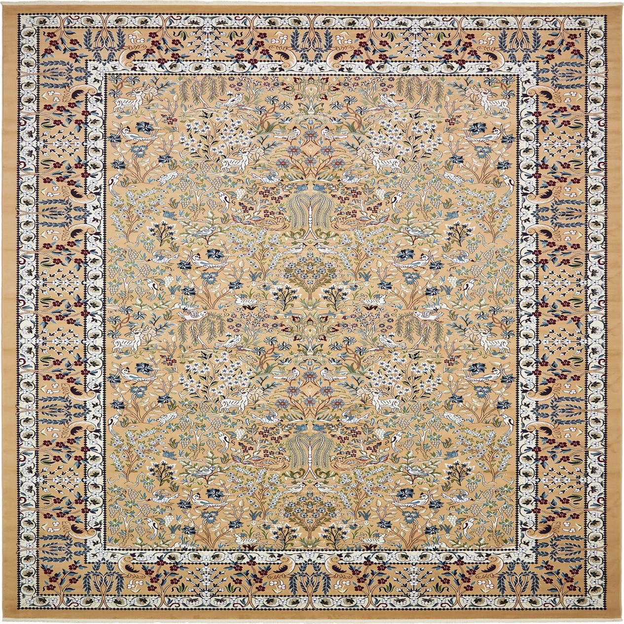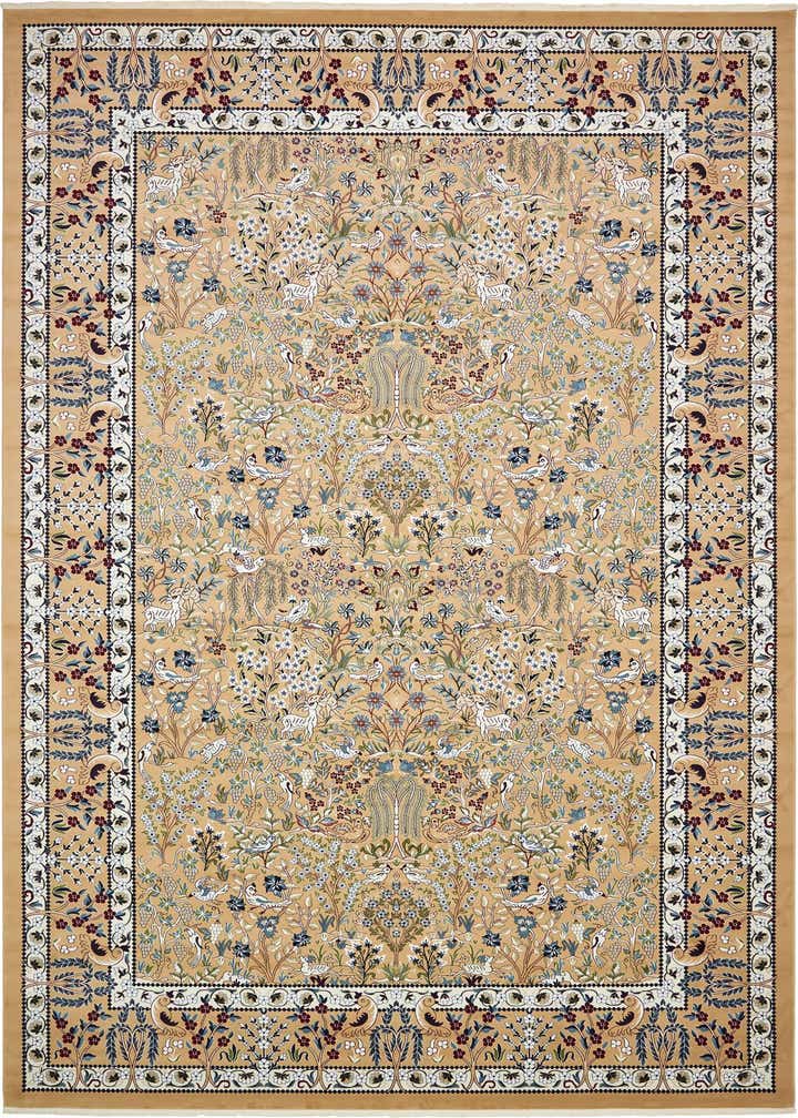 Primary color is Beige. Colors in this rug include: Beige, Blue, Burgundy, Cream, Green, Ivory, Navy Blue, Puce.