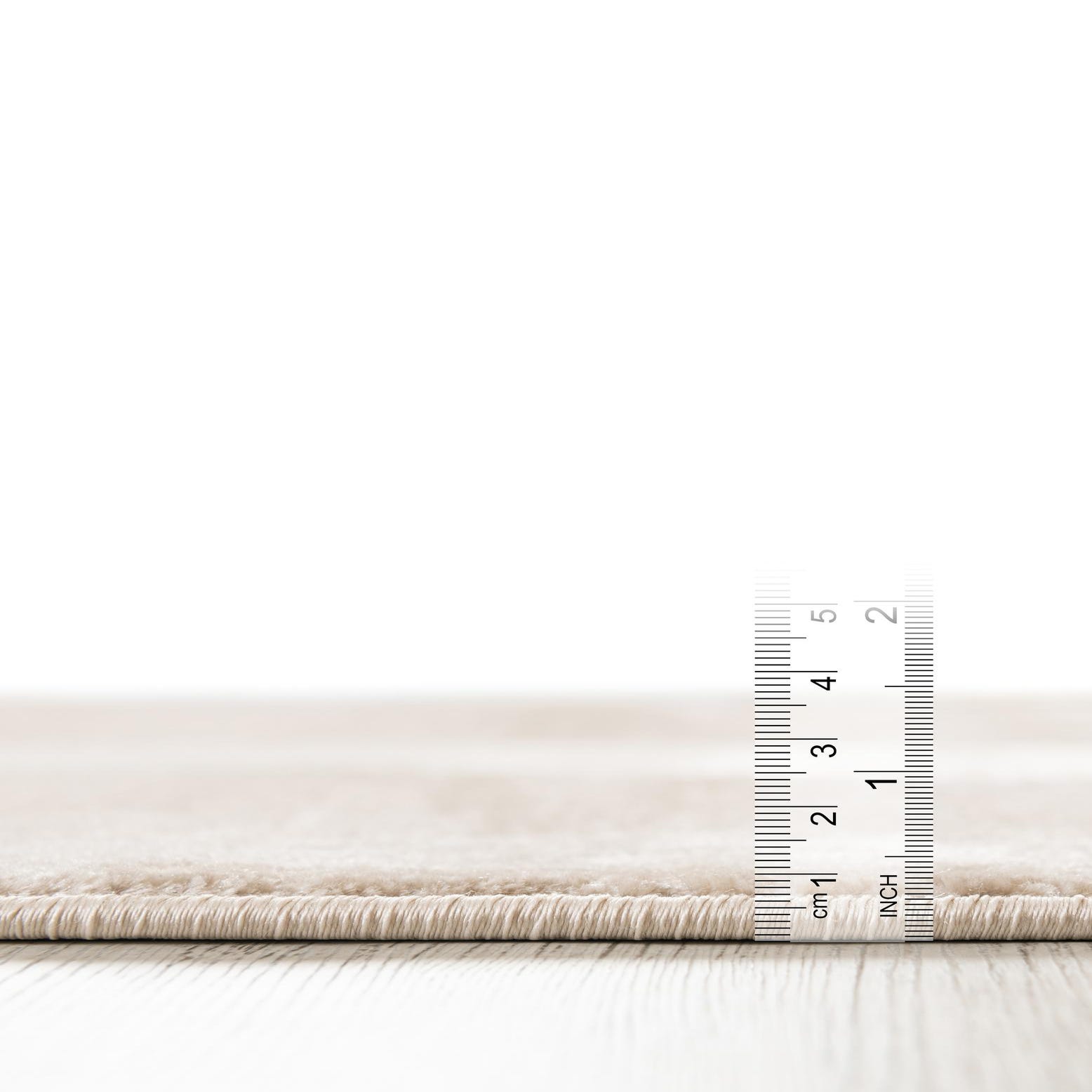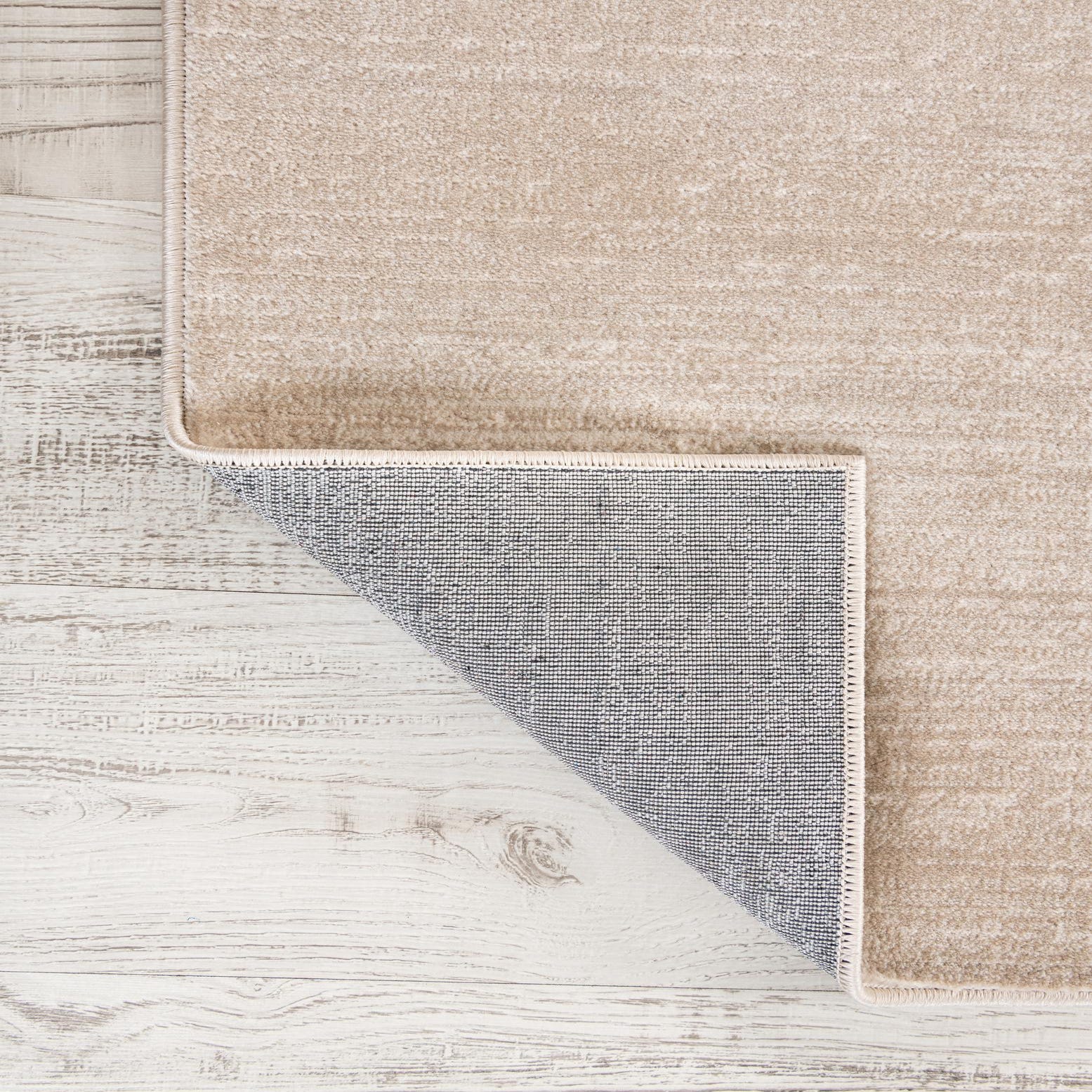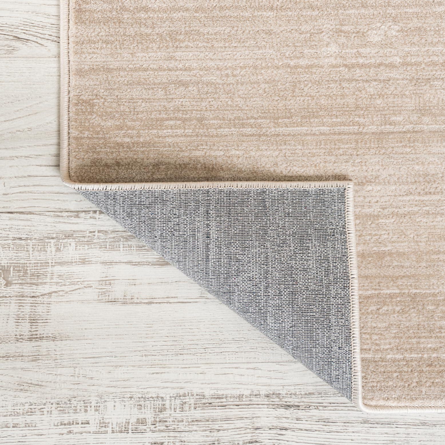 A quietly refined runner with a beige ground that carries soft tonal striations in ivory and light brown. The pattern is deliberately understated — a uniform, linear texture rather than a distinct motif — which gives the rug a calm, cohesive presence. Machine-made from 70% polypropylene and 30% polyester, the low-cut pile has a smooth, slightly velvety hand and a subtle sheen that catches light without drawing attention, making the surface feel inviting underfoot.