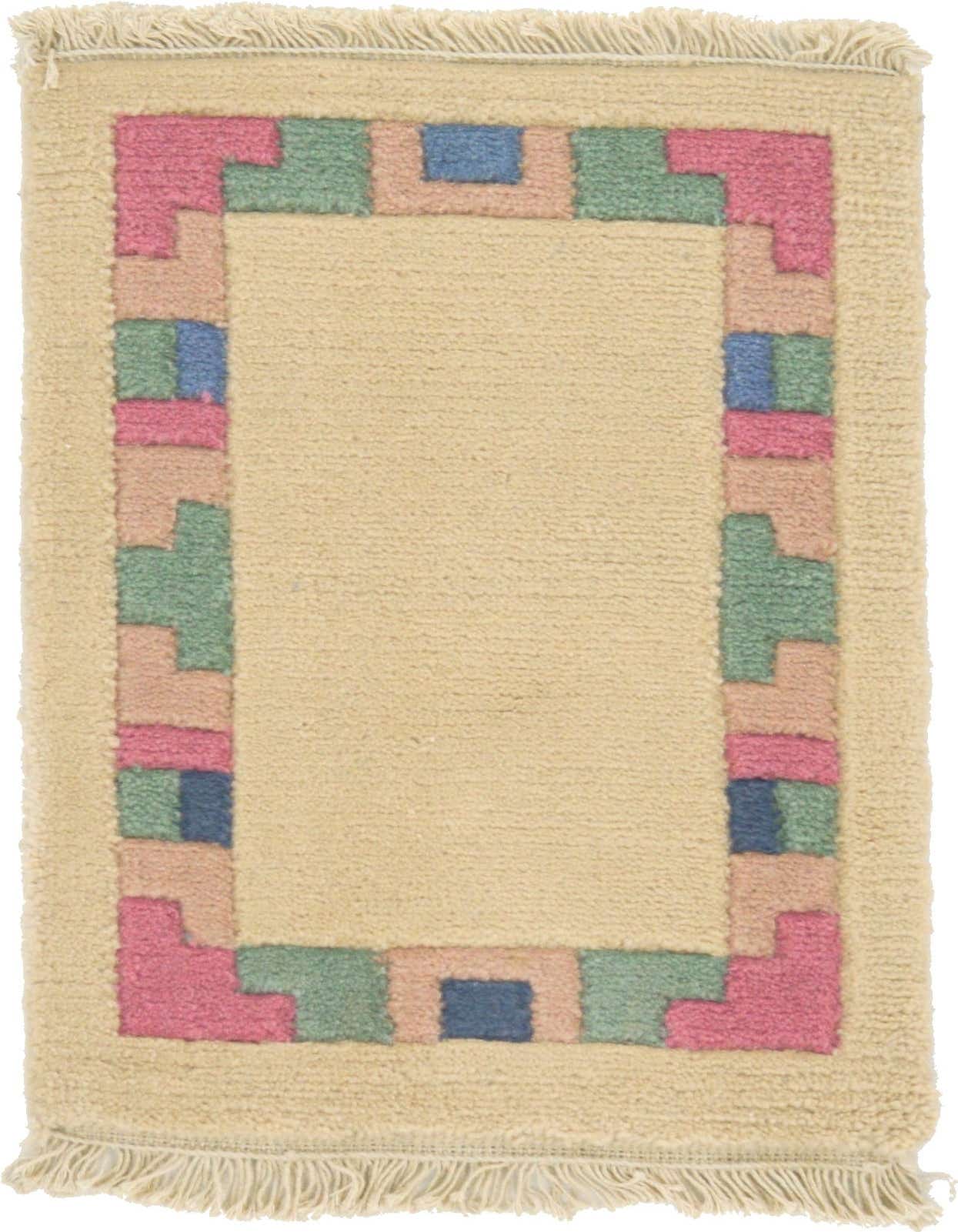 1' 4 x 2' Hand Knotted Indo Tibet Wool Rug