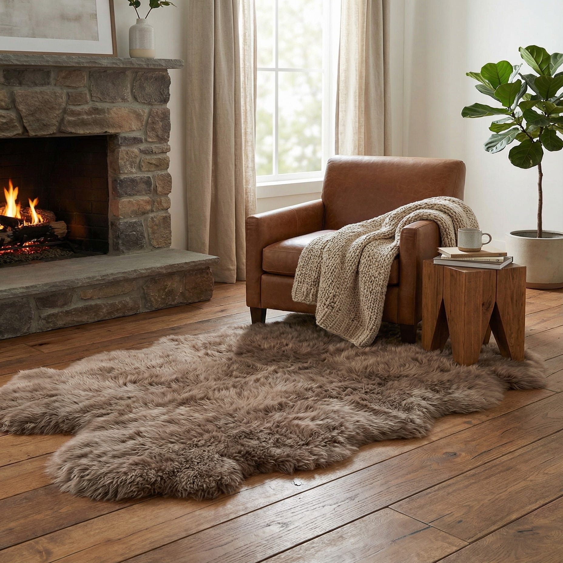 This lambskin works well as a bedside layer, a cozy accent at the foot of a bed, or draped over an occasional chair or bench to soften modern lines. It complements Scandinavian, rustic, and contemporary settings and pairs naturally with light woods, muted neutrals, and mixed textiles for a layered, lived-in effect. In smaller spaces like reading nooks or nurseries it introduces immediate warmth and texture, while in minimalist rooms it adds tactile contrast without changing the color story.