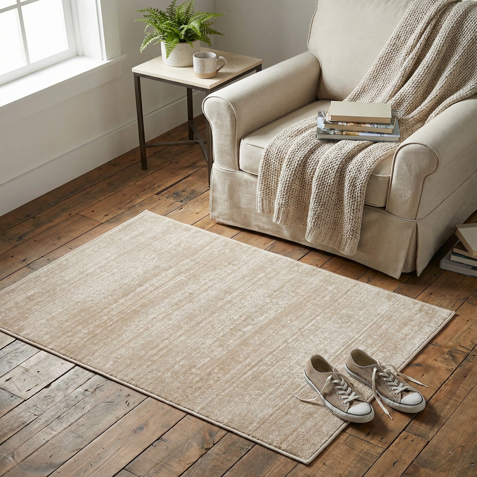 This neutral piece works well in contemporary, transitional, Scandinavian, or modern farmhouse settings. Use it to anchor a quiet entryway, tuck it beside a bed or sofa, place it under a small seating group, or layer it over a larger textured rug for depth. Pair with light wood tones, linen upholstery and matte metal accents for a cohesive, relaxed look.