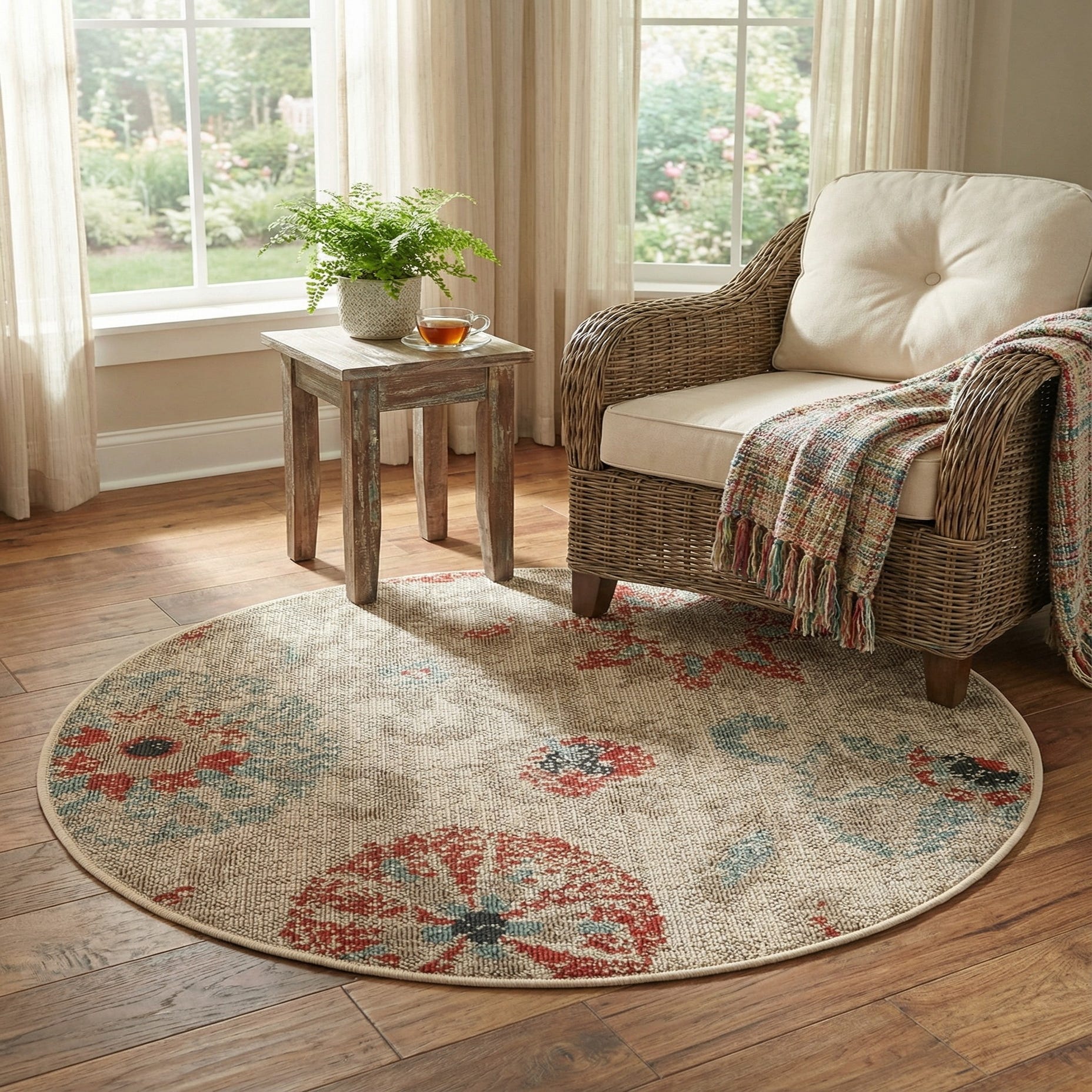 3' x 3' Washable Botanical Indoor / Outdoor Round Rug
