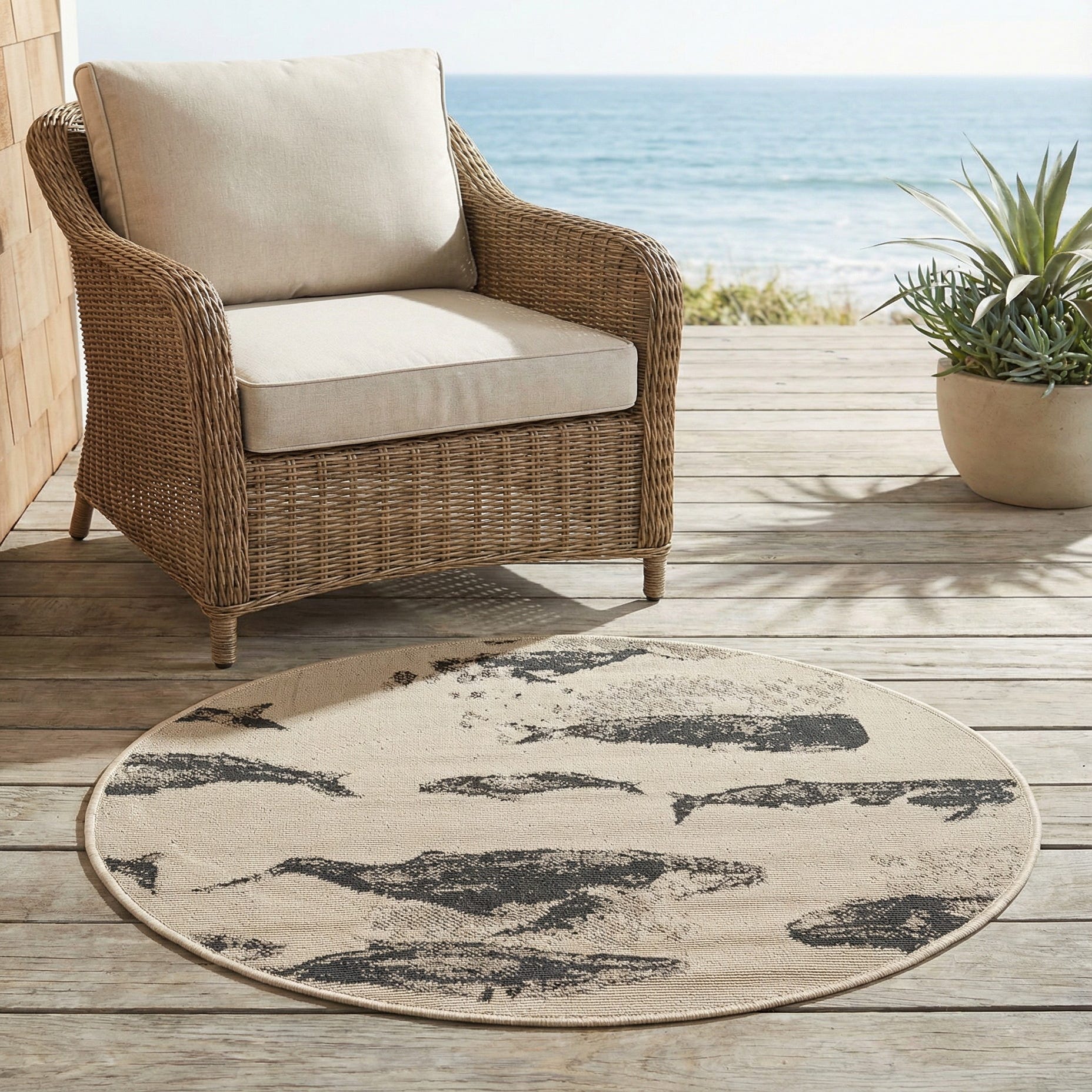 3' x 3' Washable Coastal Indoor / Outdoor Round Rug