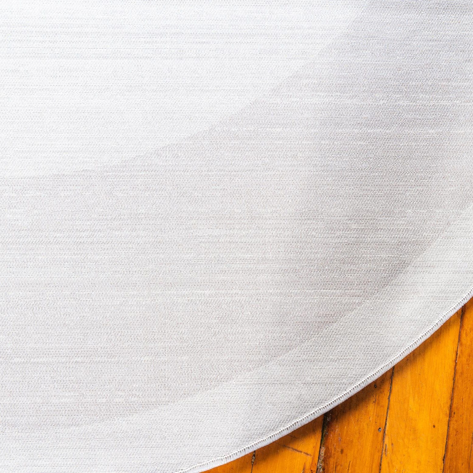 This rug suits modern and transitional interiors where a quiet, grounding element is needed. Use it to anchor a small round dining table or breakfast nook, place it beneath a reading chair to define a cozy corner, or set it in an entryway to introduce a soft, layered look. It pairs naturally with light wood furniture, linen upholstery, rattan accents, and muted color schemes like soft whites, warm greys, and sage greens.