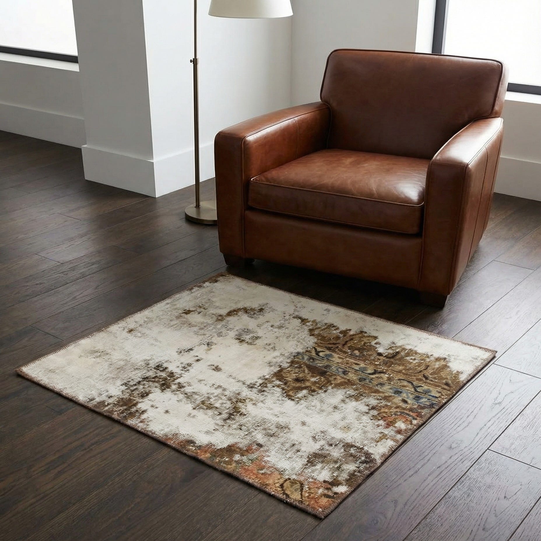 The subtle color transitions and vintage-inspired motif make this rug suitable for a variety of interior design scenarios, from classic to contemporary, rustic to bohemian. It lends itself well to spaces where a touch of old-world charm is desired, yet its understated elegance allows it to easily integrate with modern furnishings. Ideal for accentuating small areas or as a focal point in an intimate seating arrangement, this rug's square shape offers versatility and style to any room.