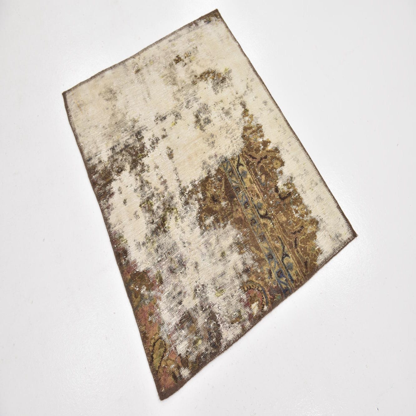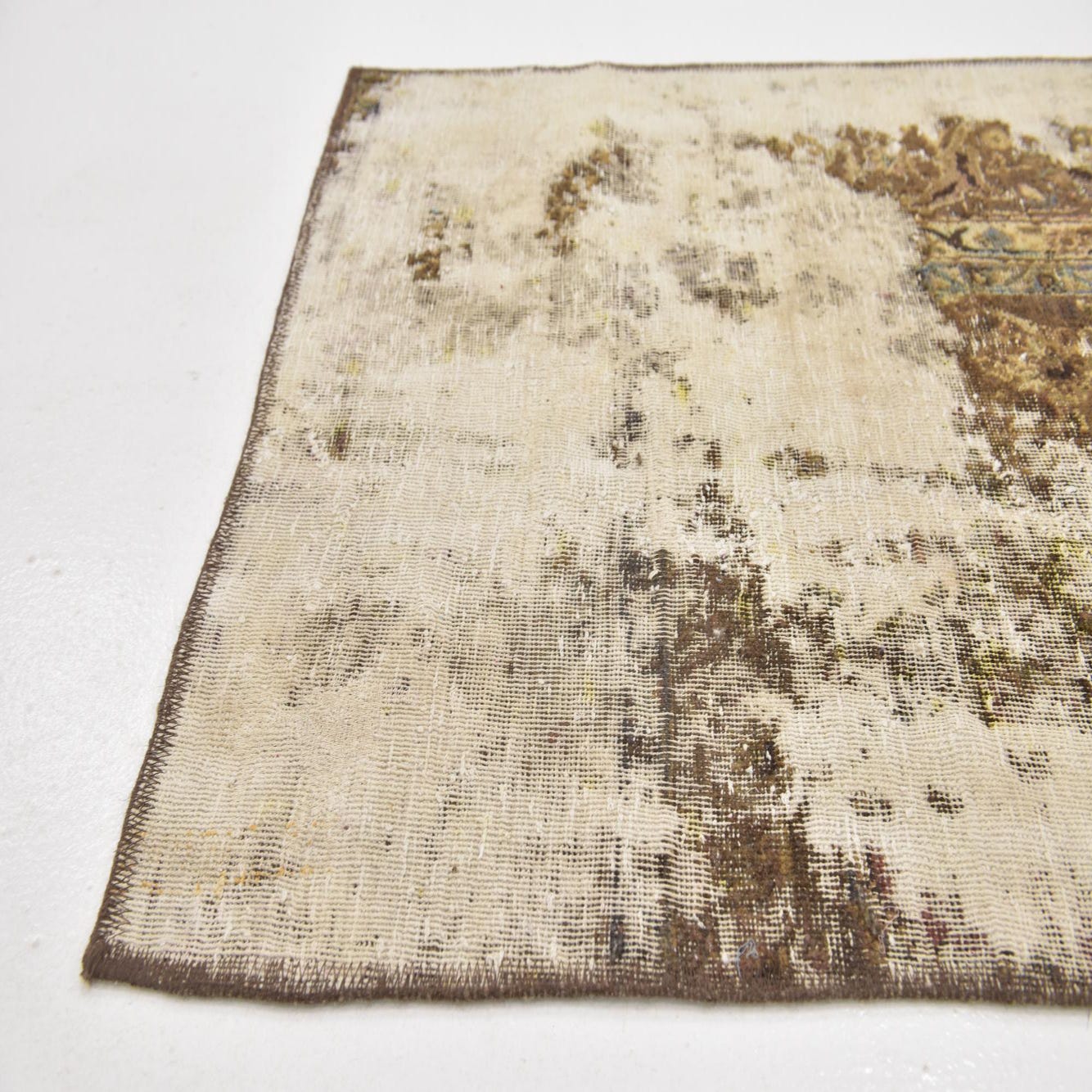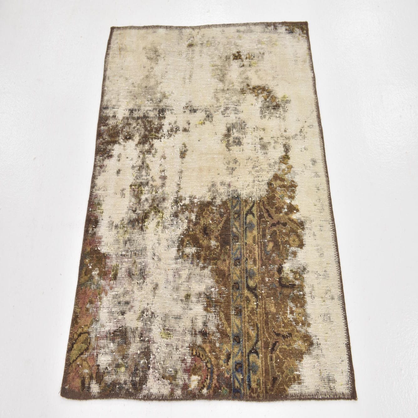 A square 2' 10 x 3' 7 Ultra Vintage wool rug featuring an abstract, distressed Persian pattern in browns, tans, and ivories.