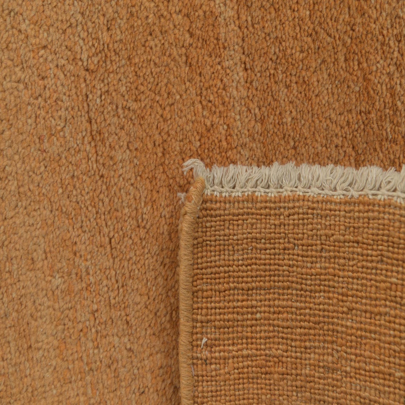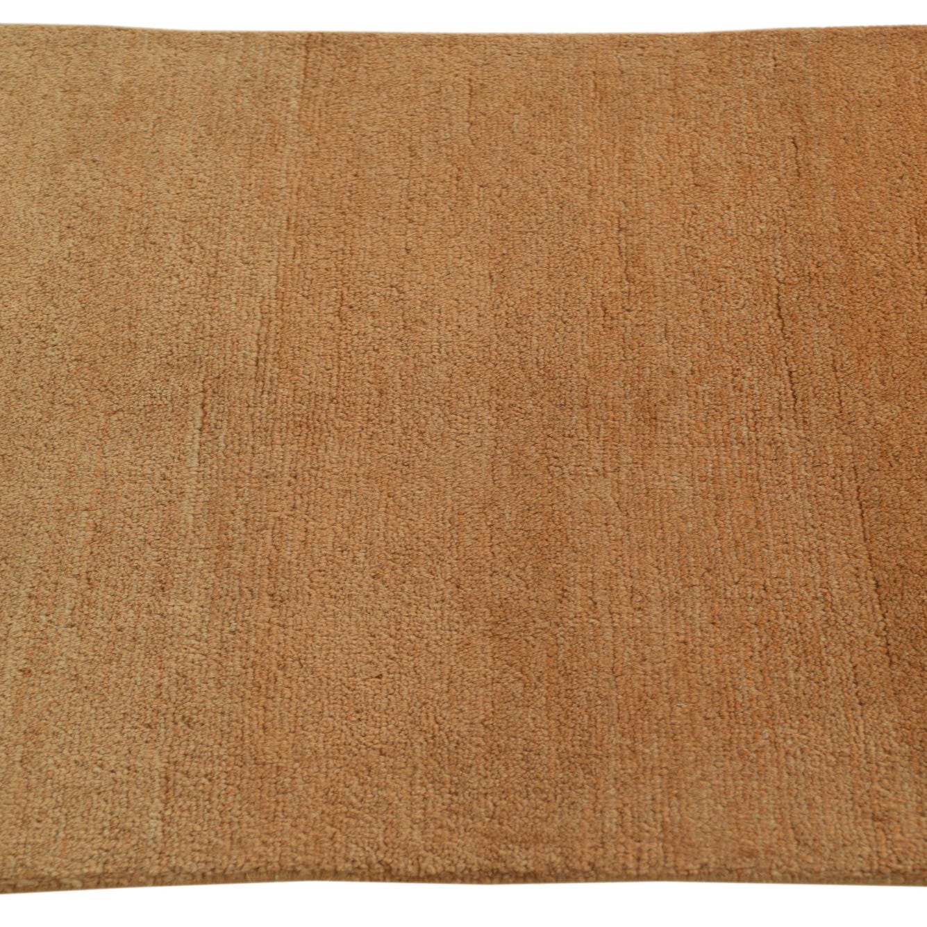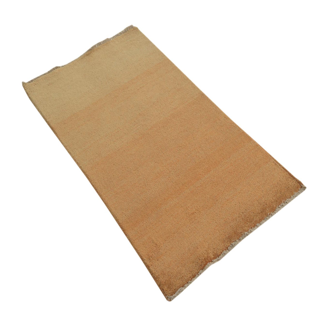 The Kashkuli Gabbeh collection presents a hand-knotted rug crafted from 100% wool, offering a tactile experience with a comforting, plush feel underfoot. This particular piece measures 3x4 and features a warm, inviting palette with a beige background accented by soft orange hues, creating a subtle gradient effect. The texture and variations in color give this rug its character, providing a visual softness that complements its physical texture.